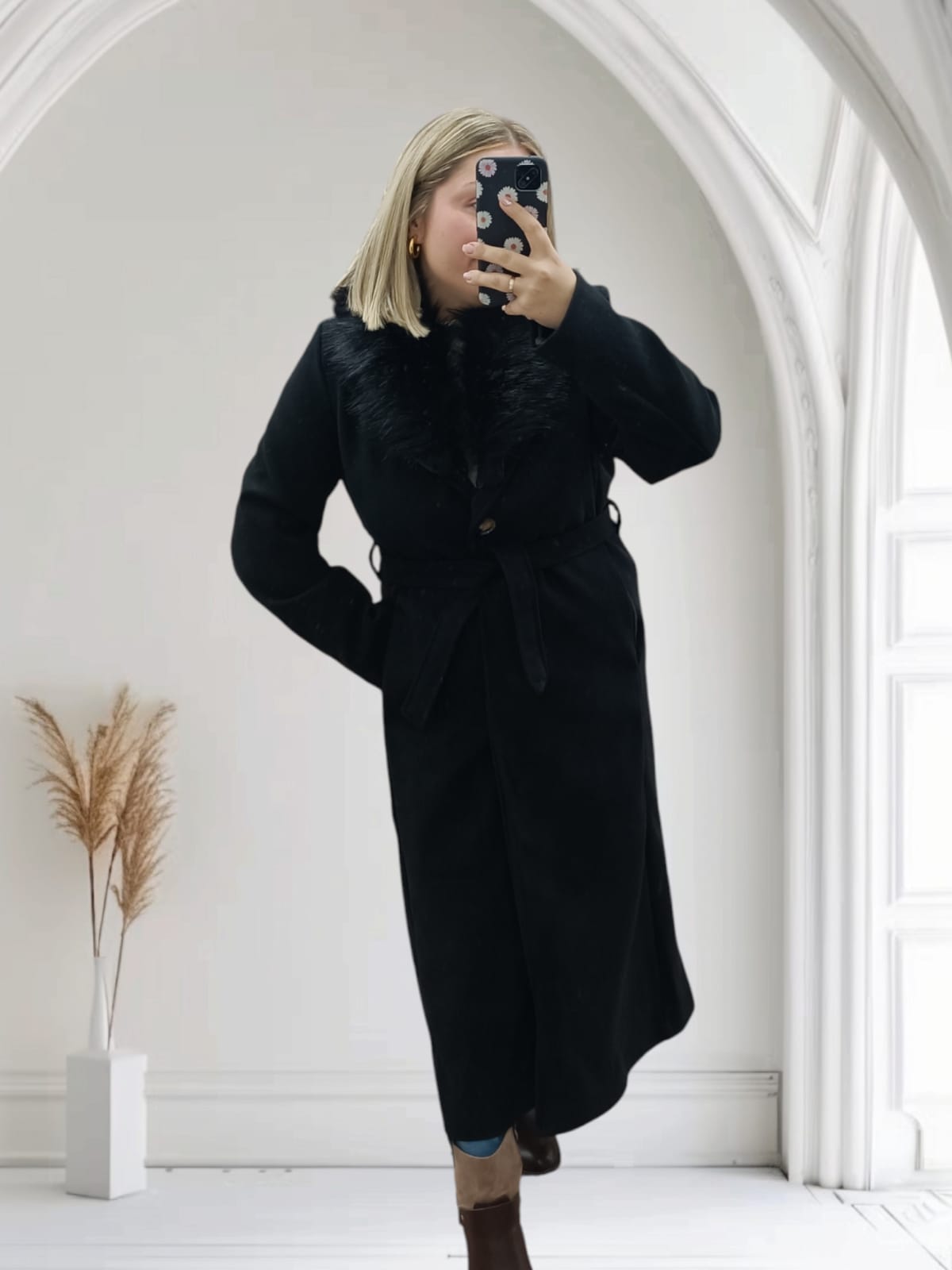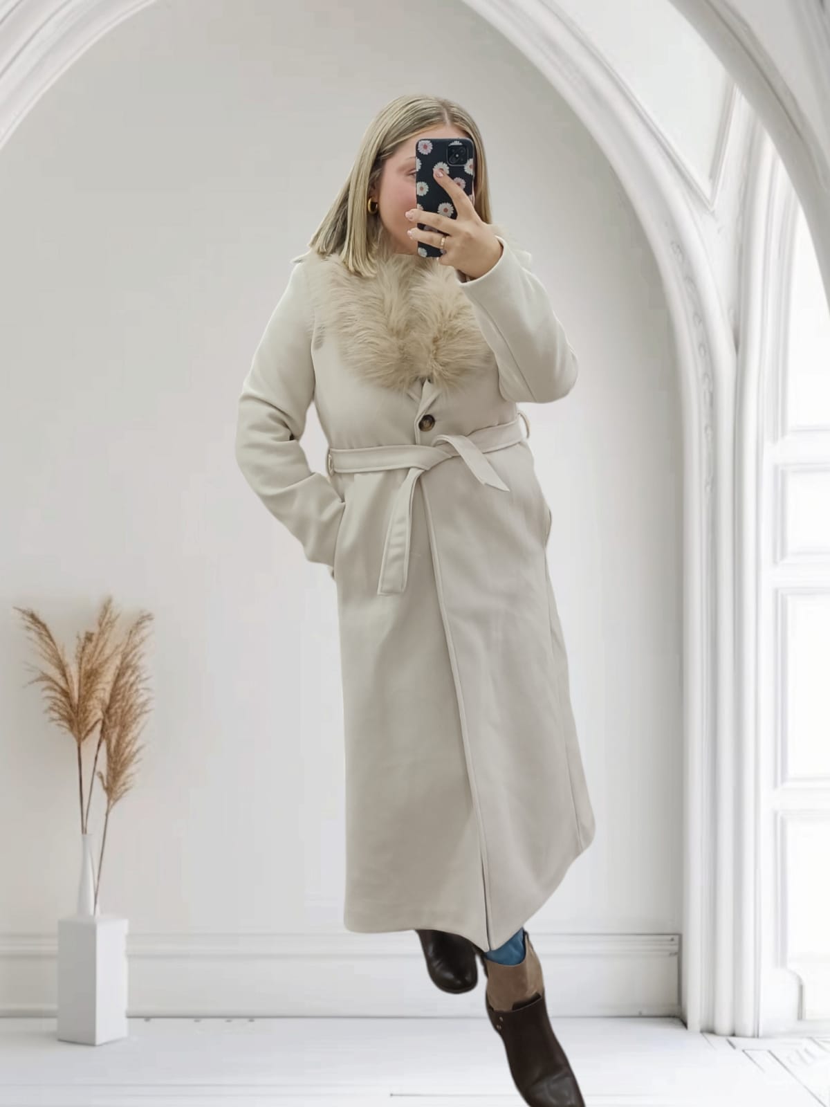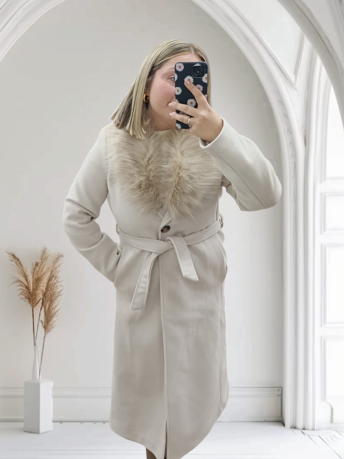 Abrigo de Paño Cuello de Pelo Desmontable