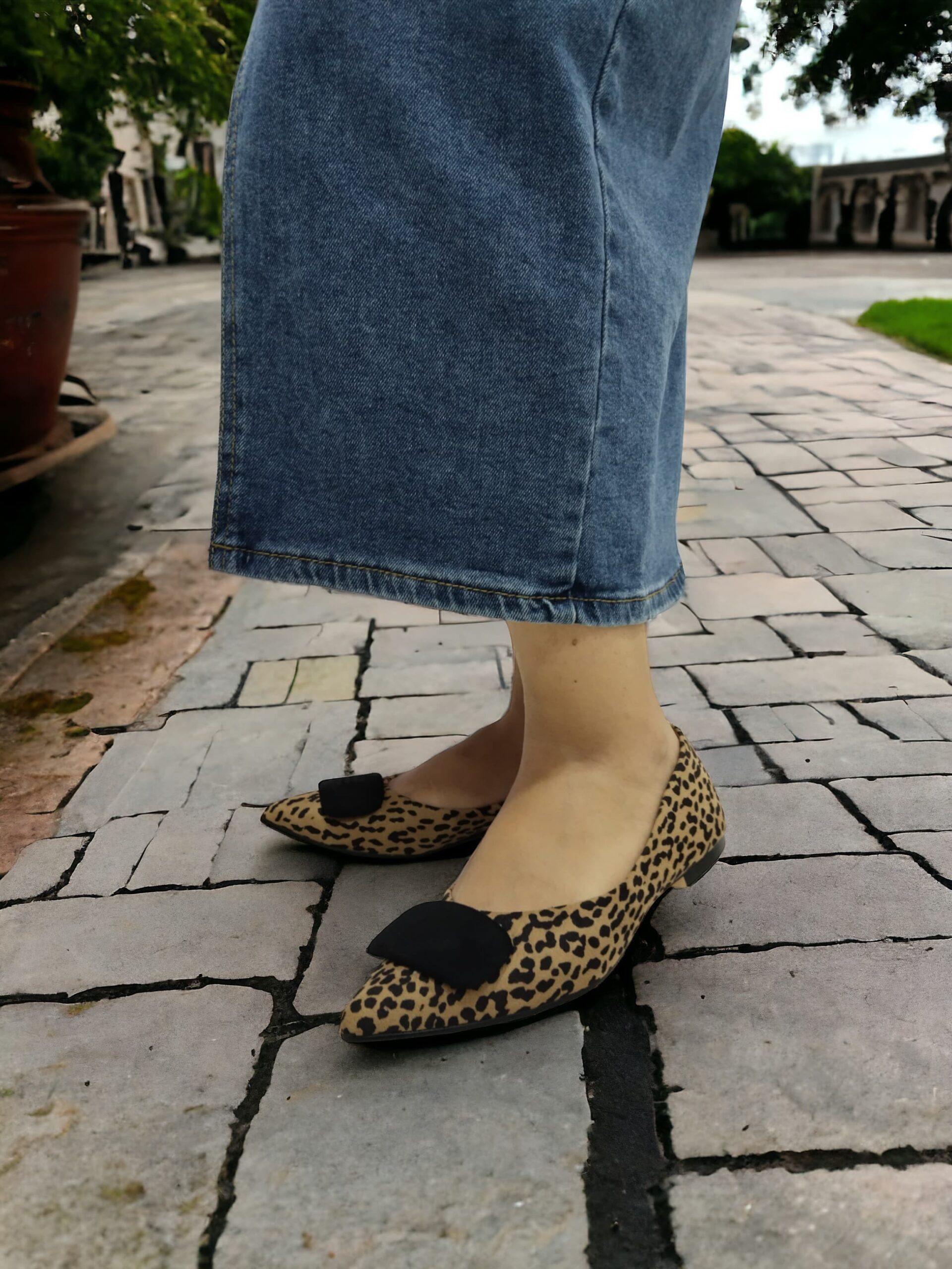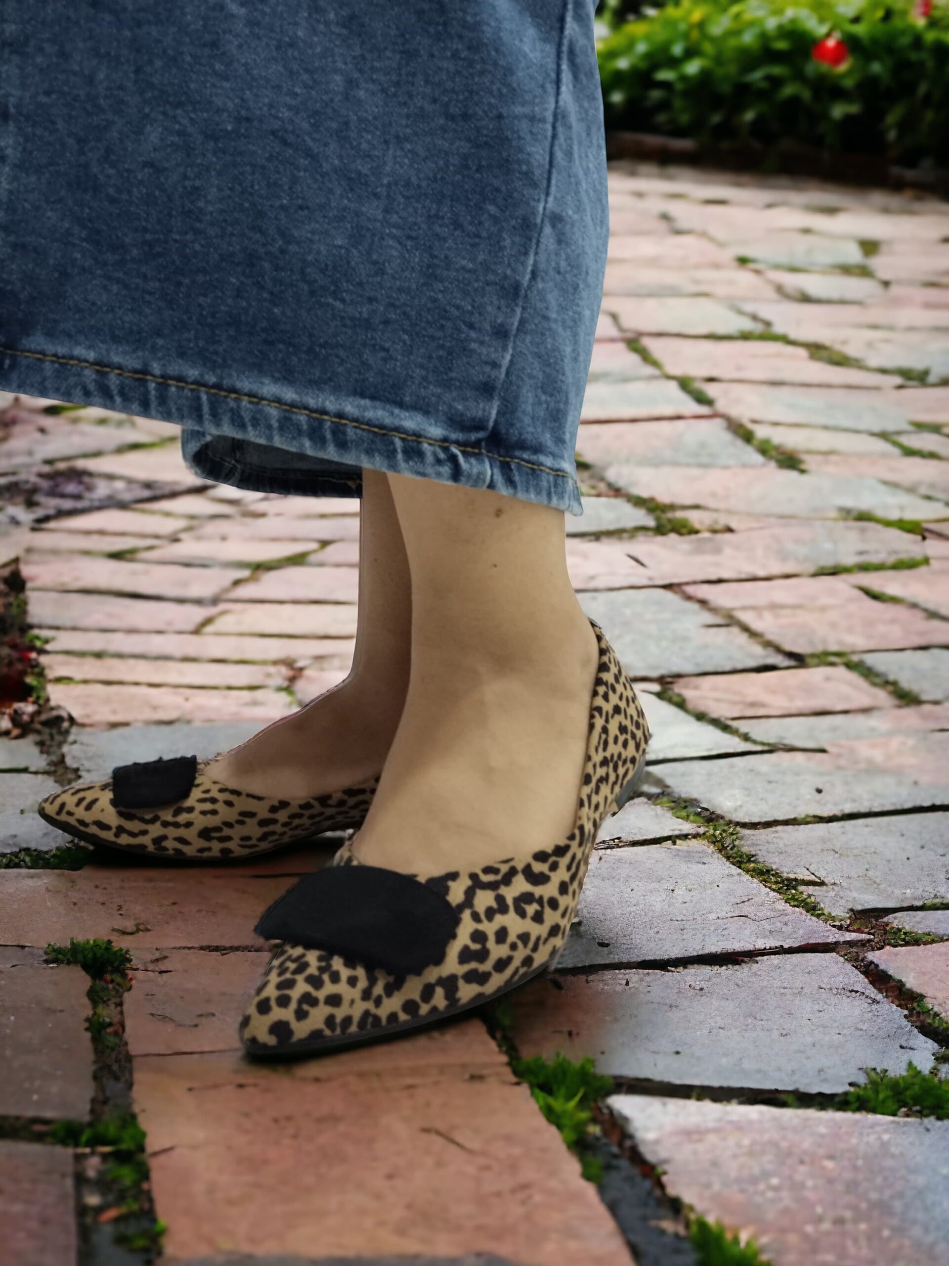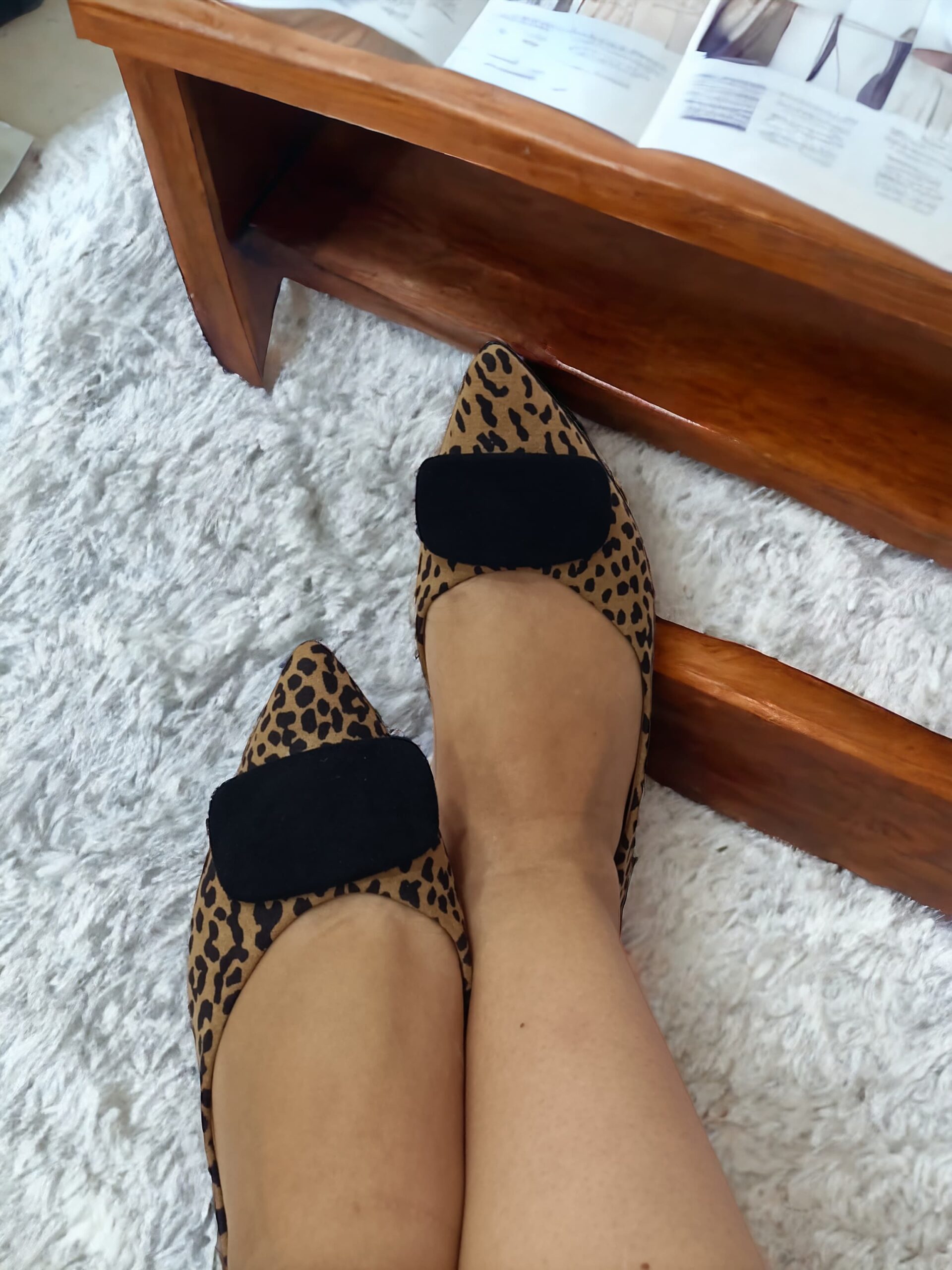 Nuestras bailarinas Valeria combinan elegancia y comodidad en cada paso. Confeccionadas en tejido efecto ante con estampado de leopardo, lucen un acabado en punta y un tacón de suela de 1cm, ¡perfectas para cualquier ocasión! Además, cuentan con un adorno en negro en la parte delantera para añadir un toque de sofisticación a tu look. ¡No querrás quitártelas!