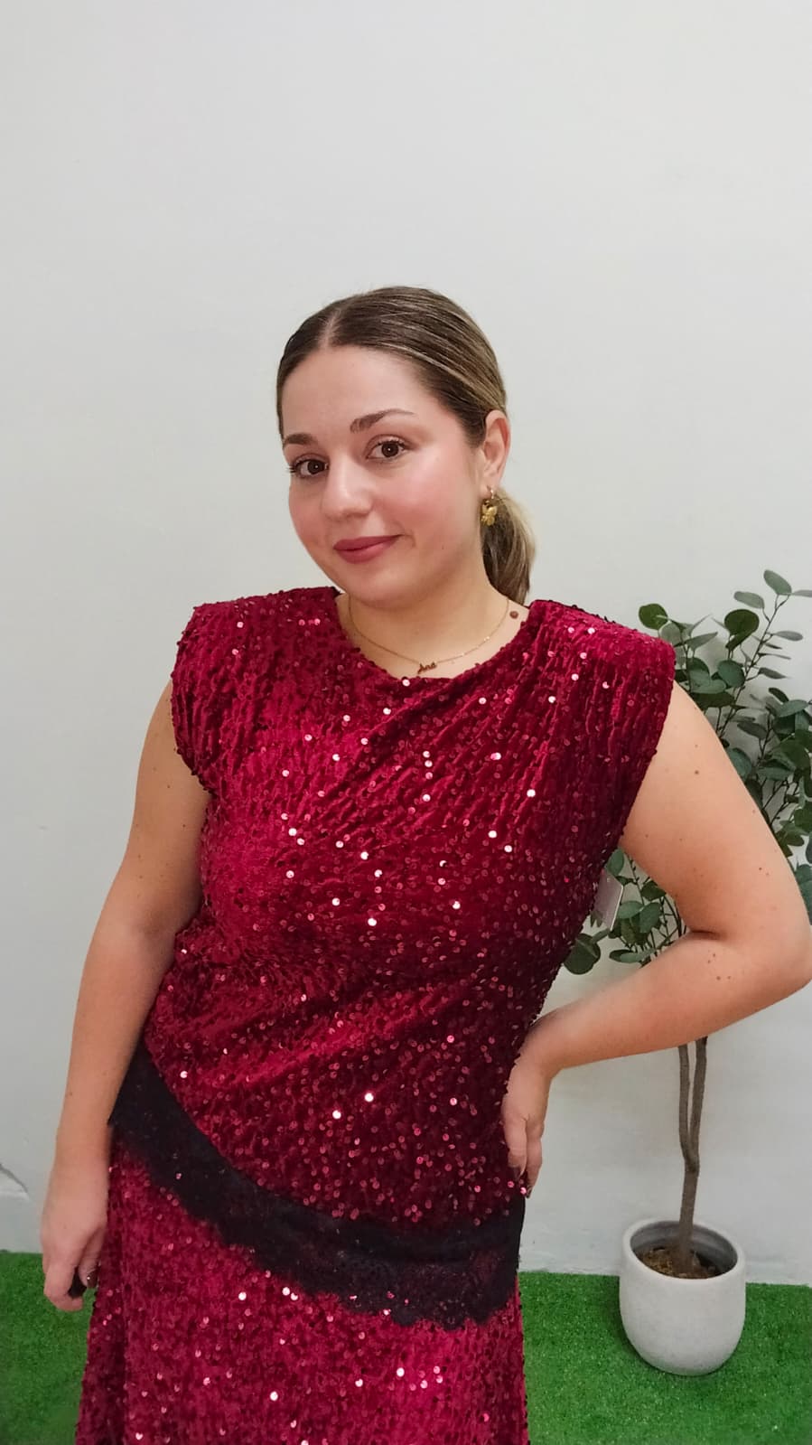 Blusa – Top de Lentejuelas Roja con Encaje