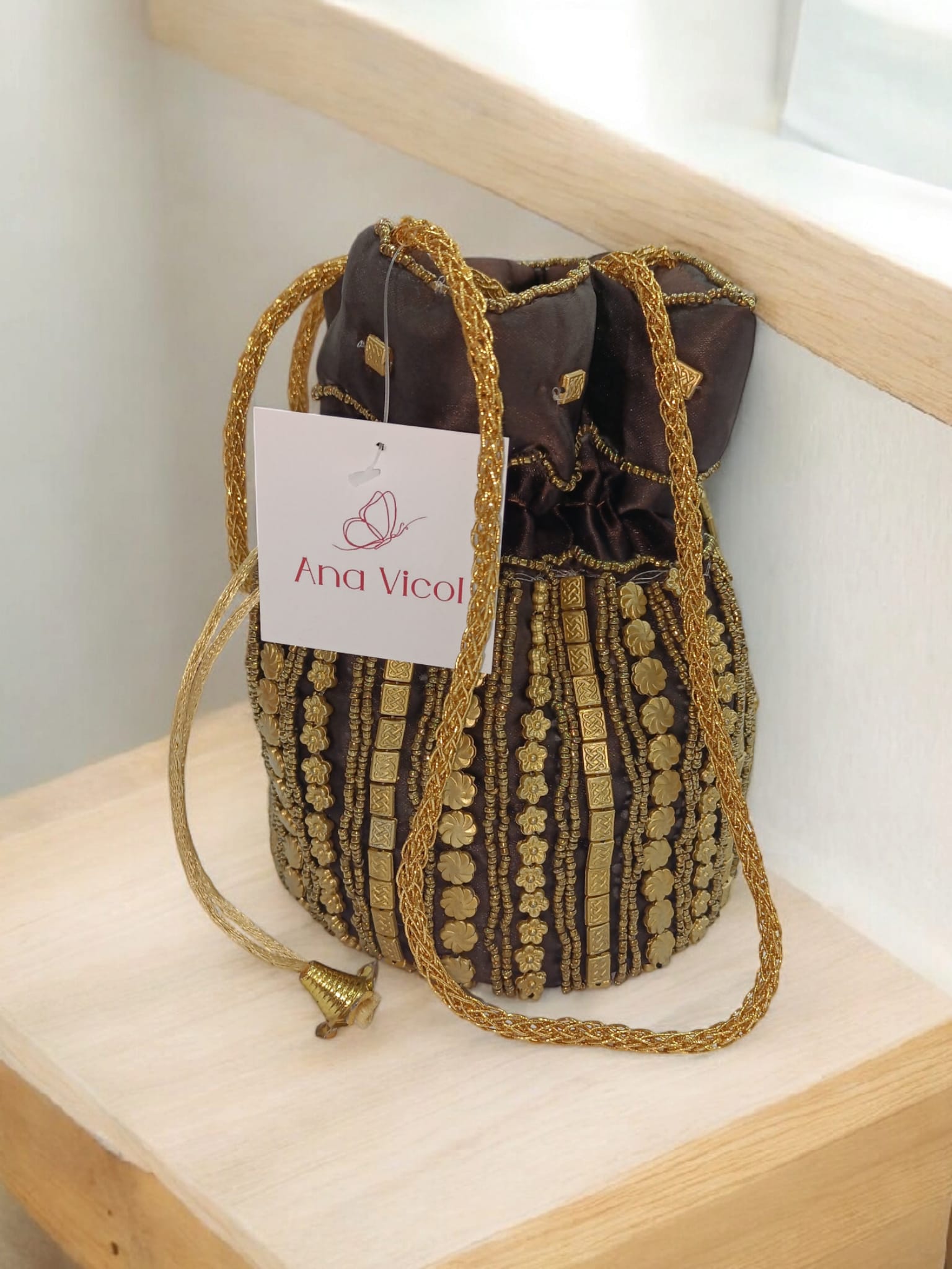 Bolso Bombonera Marrón Chocolate – Dorado