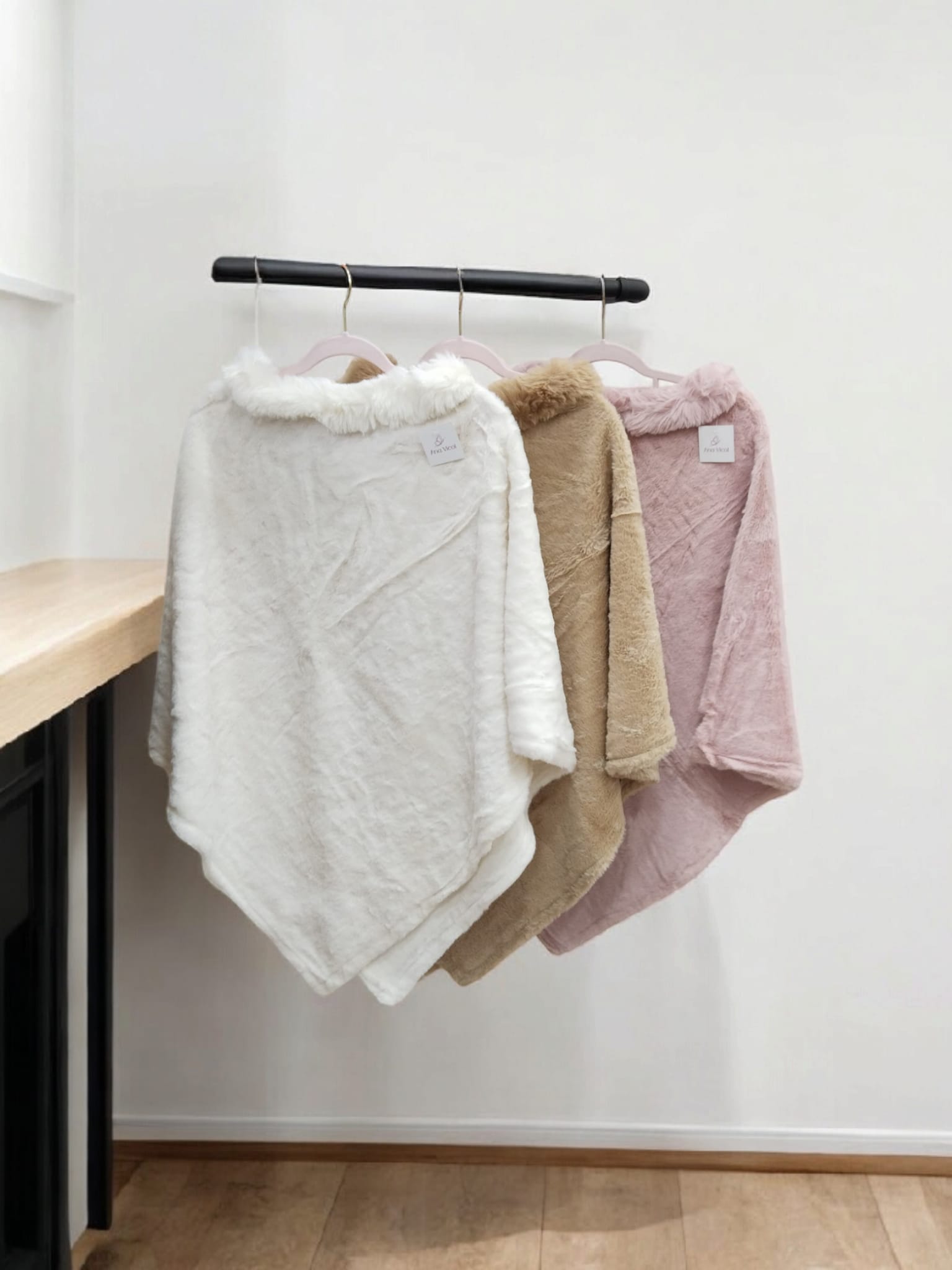 Preciosas capas- poncho confeccionadas en tejido de punto de pelito. Tacto suave y agradable. Extra de pelito en el cuello. Ideales para la temporada otoño-invierno, ya que son prendas versátiles que pueden llevarse de diferentes maneras. Te permiten ir cómoda y calentita durante toda la temporada. ¡Dan mucha talla! Abarcarían desde la talla XS hasta la talla XXL (34-44/46). Disponibles en varios colores. En nuestra web puedes encontrar también nuestras capas de punto. Si necesitas más información, háblanos al 614265099.