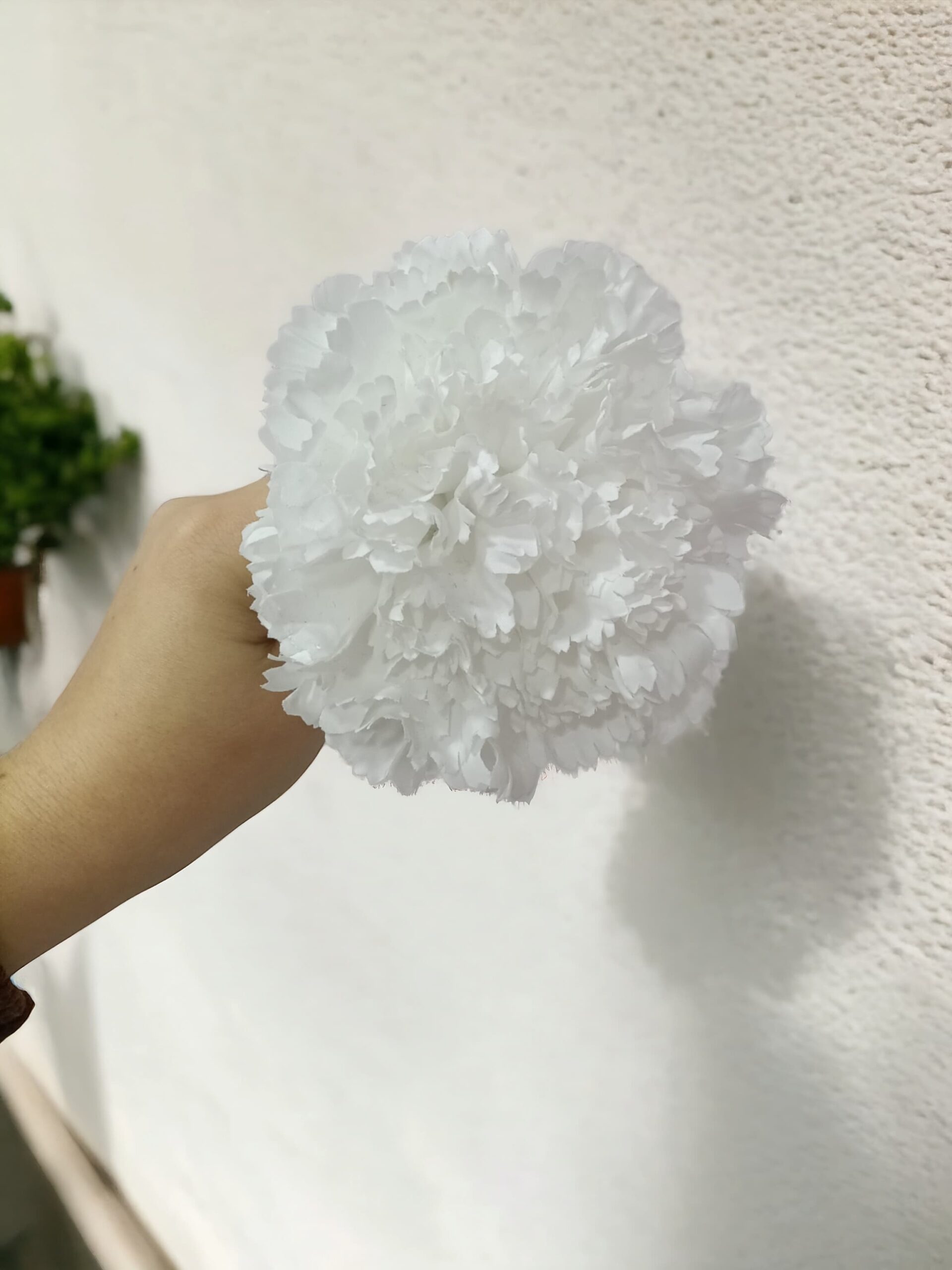 Flor de flamenca diseño clavel, de tamaño grande, con un diámetro aproximado de 10cm.