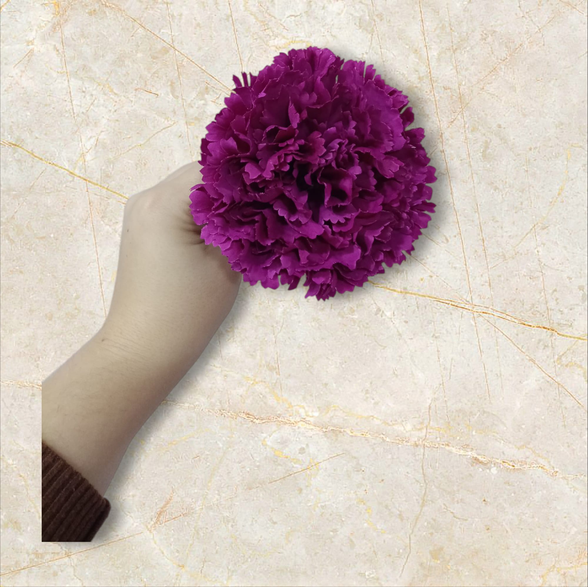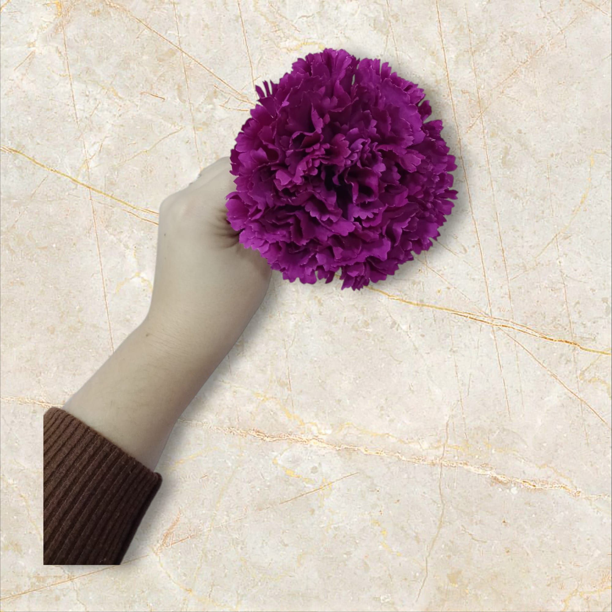 Flor de flamenca diseño clavel, de tamaño grande, con un diámetro aproximado de 10cm.