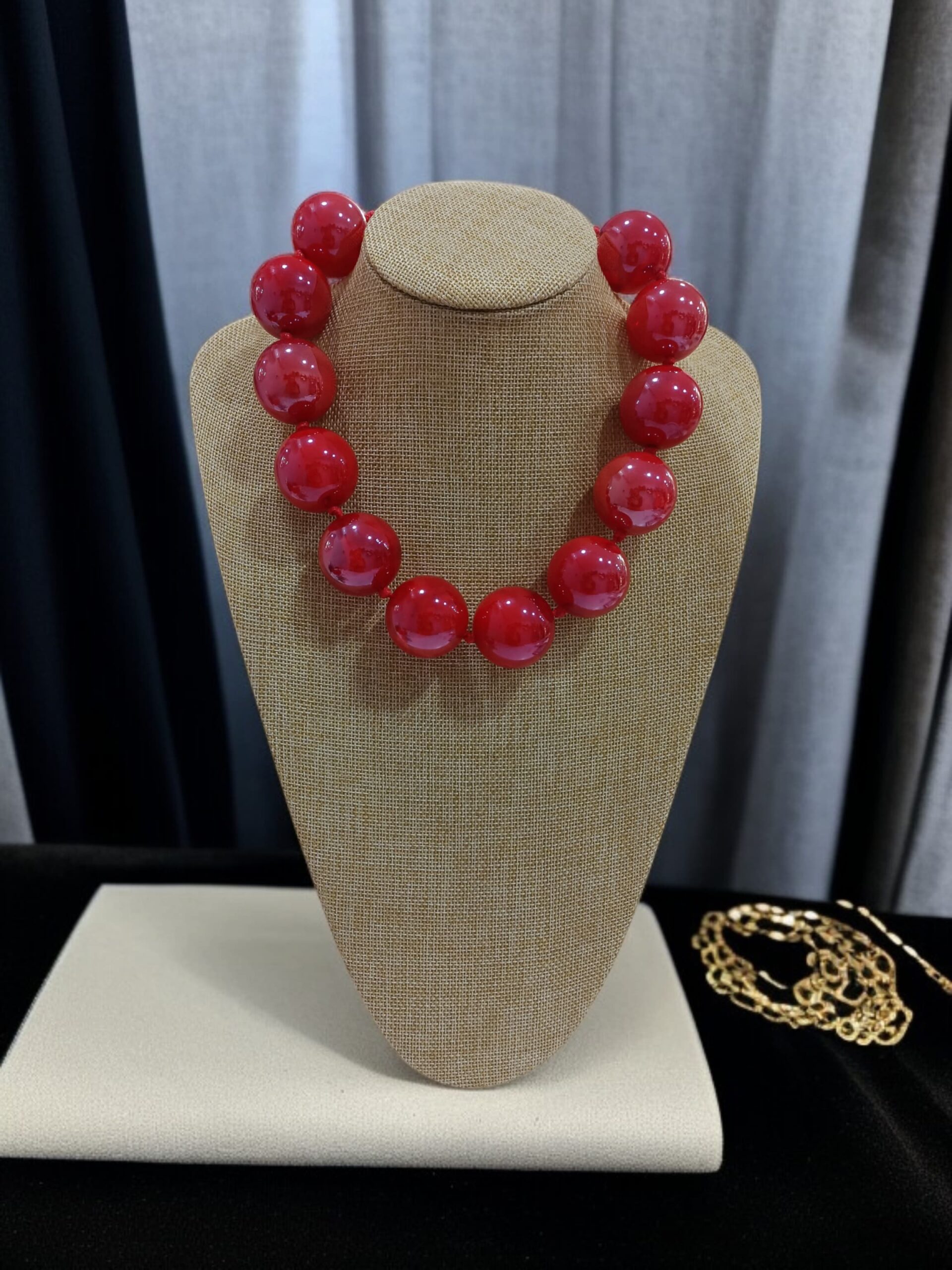 Collar de piedras de nácar grandes en color rojo con efecto brillo (no mate).