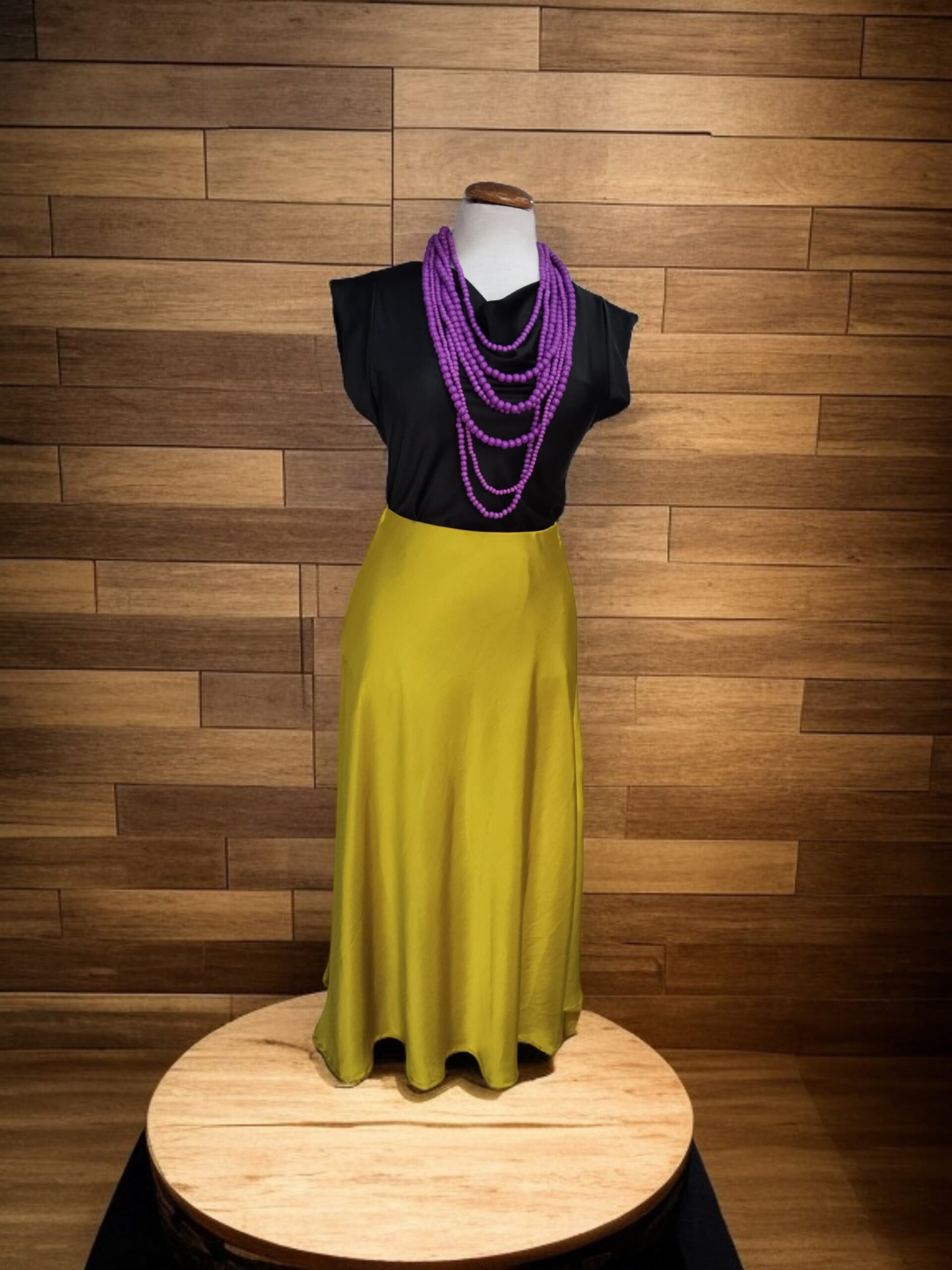 Collar largo diseño multi bolitas, color buganvilla. Ideal para completar tu outfit.