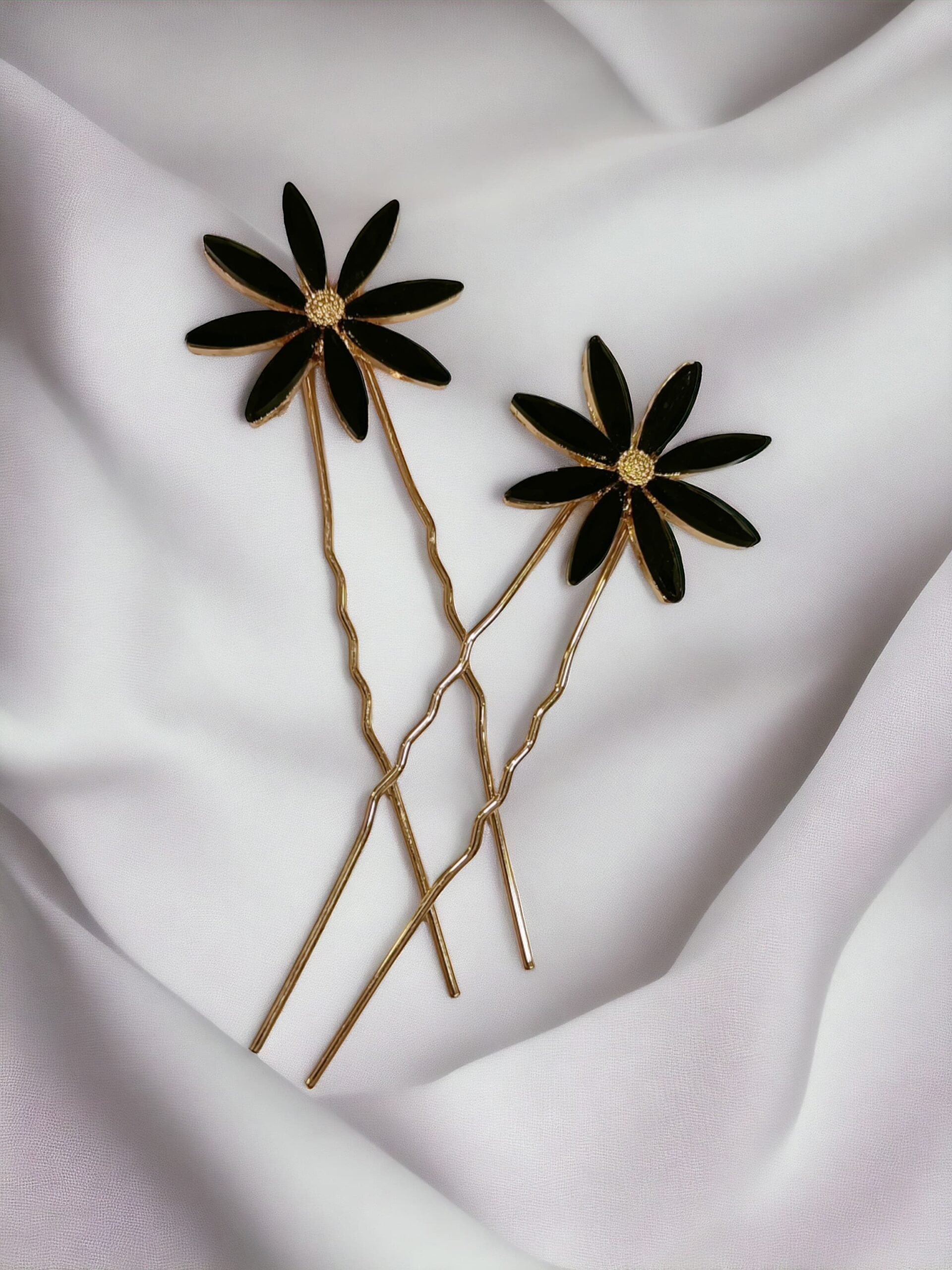 Las horquillas Margarita son el complemento perfecto para darle protagonismo a tu look. Ideales para novias e invitadas. Disponible en tres acabados: negro, plateado y dorado.