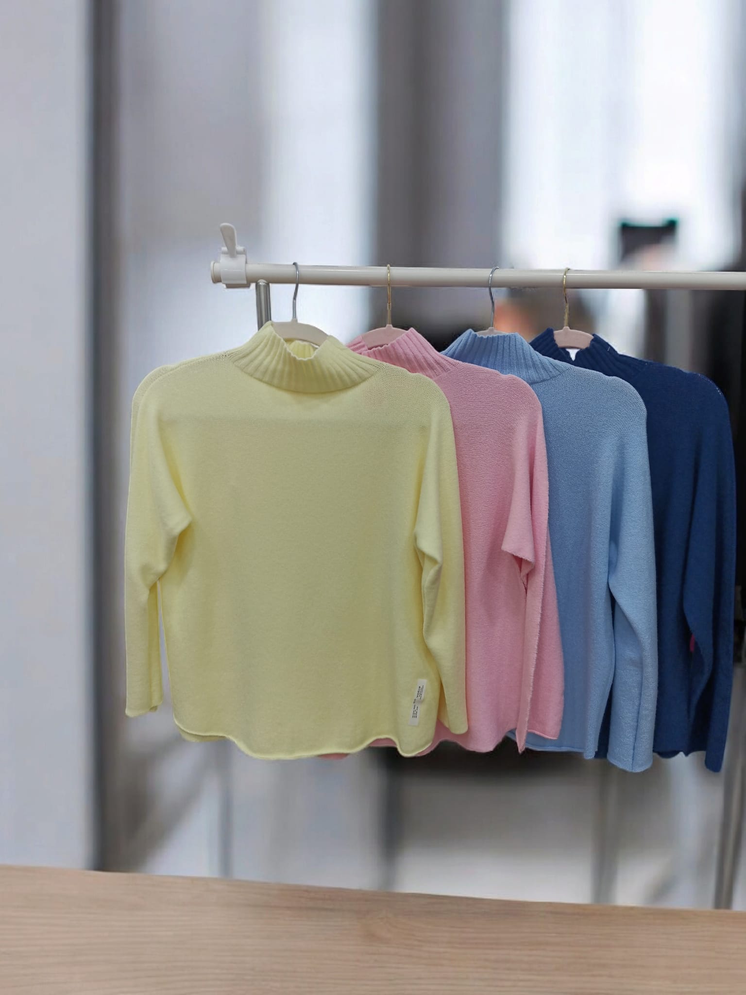 Precioso jersey liso de cuello medio alto. Tejido suave y agradable, además de ser muy cómodo y calentito. Disponible en varios colores. Talla única, queda suelto pero, además, al tratarse de un tejido elástico, da bastante talla. Abarcaría desde la talla S hasta la talla XL (36-42). Si necesitas ayuda con las medidas, háblanos al 614265099.