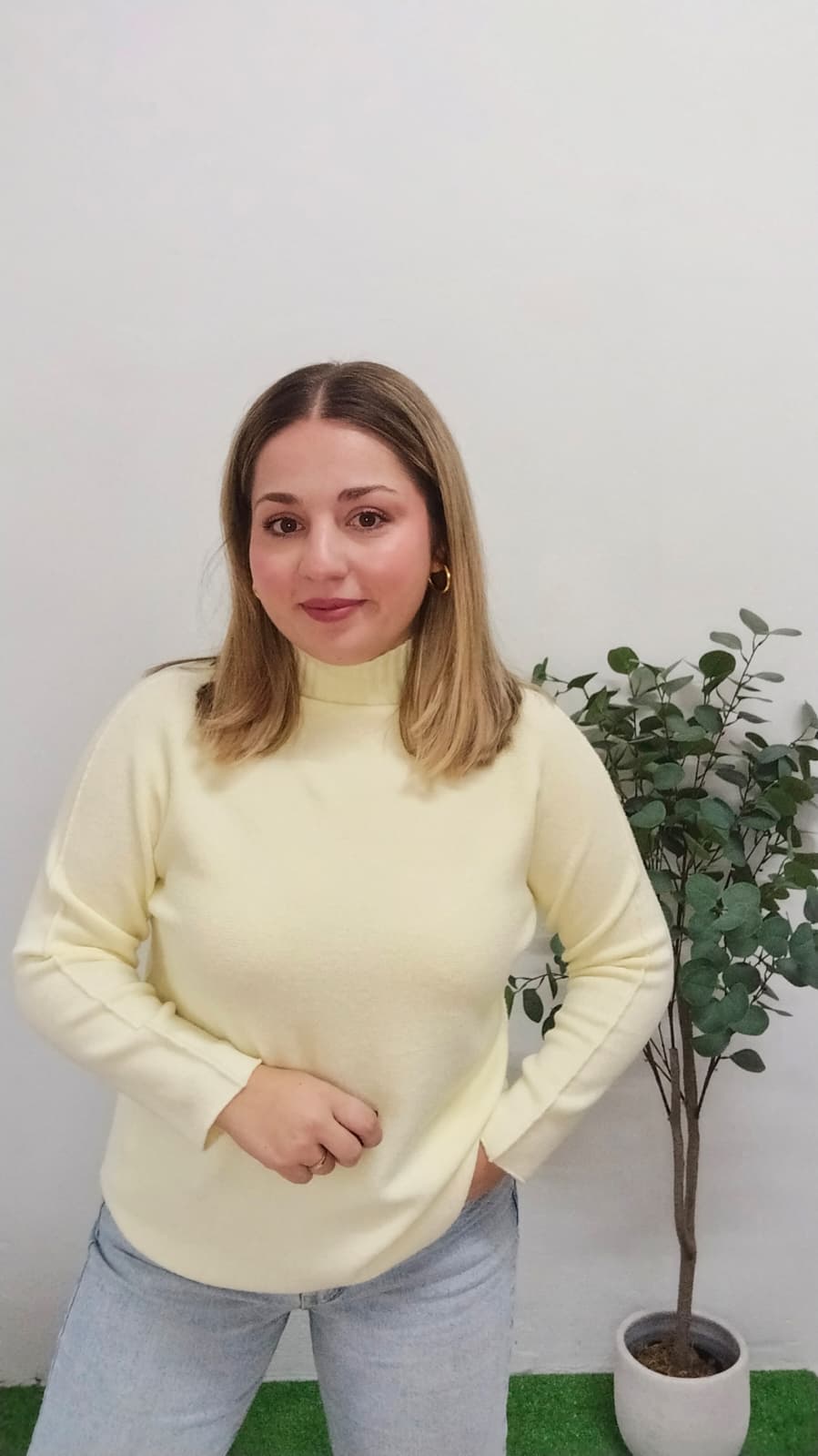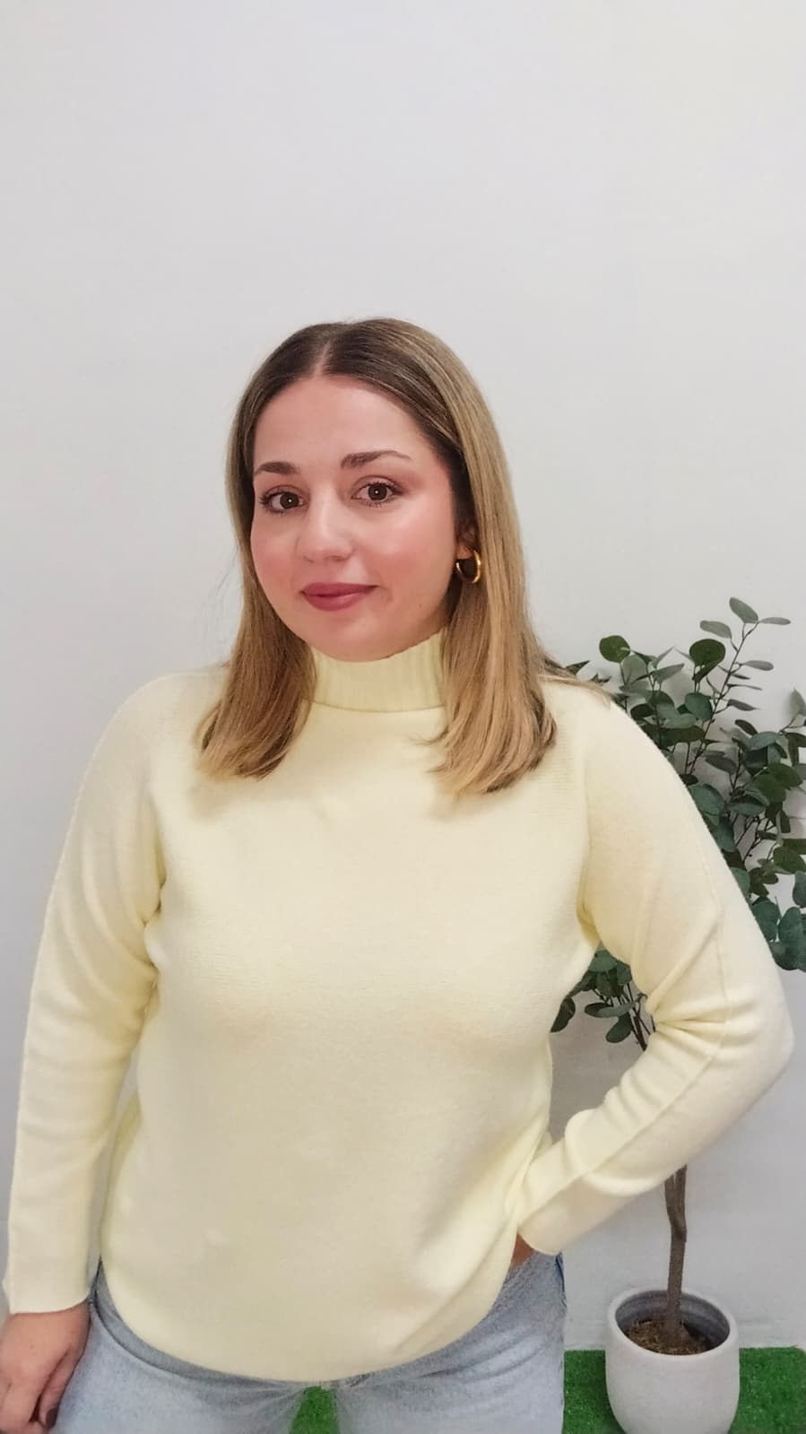 Jersey Liso Cuello Medio Alto Mujer