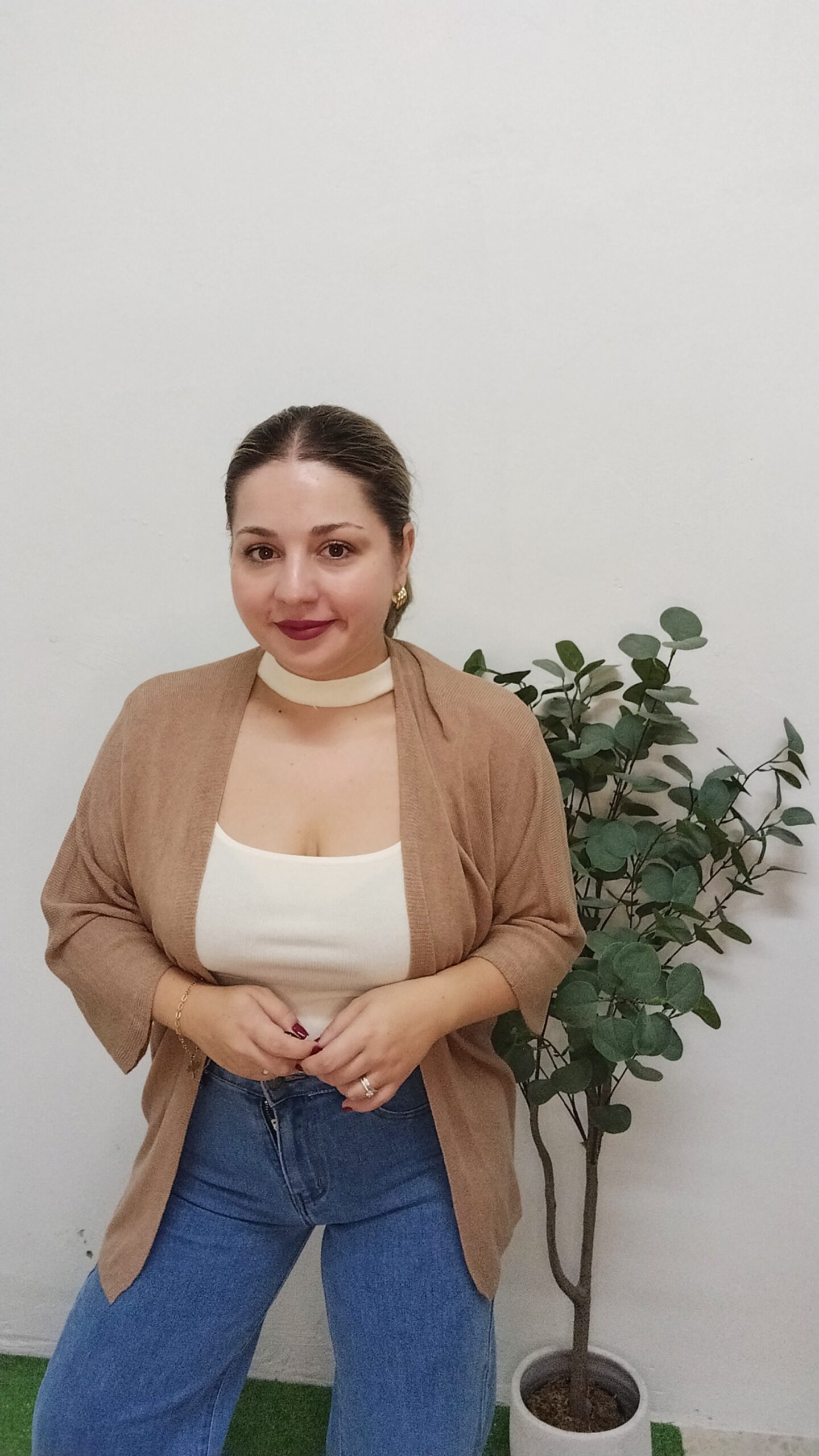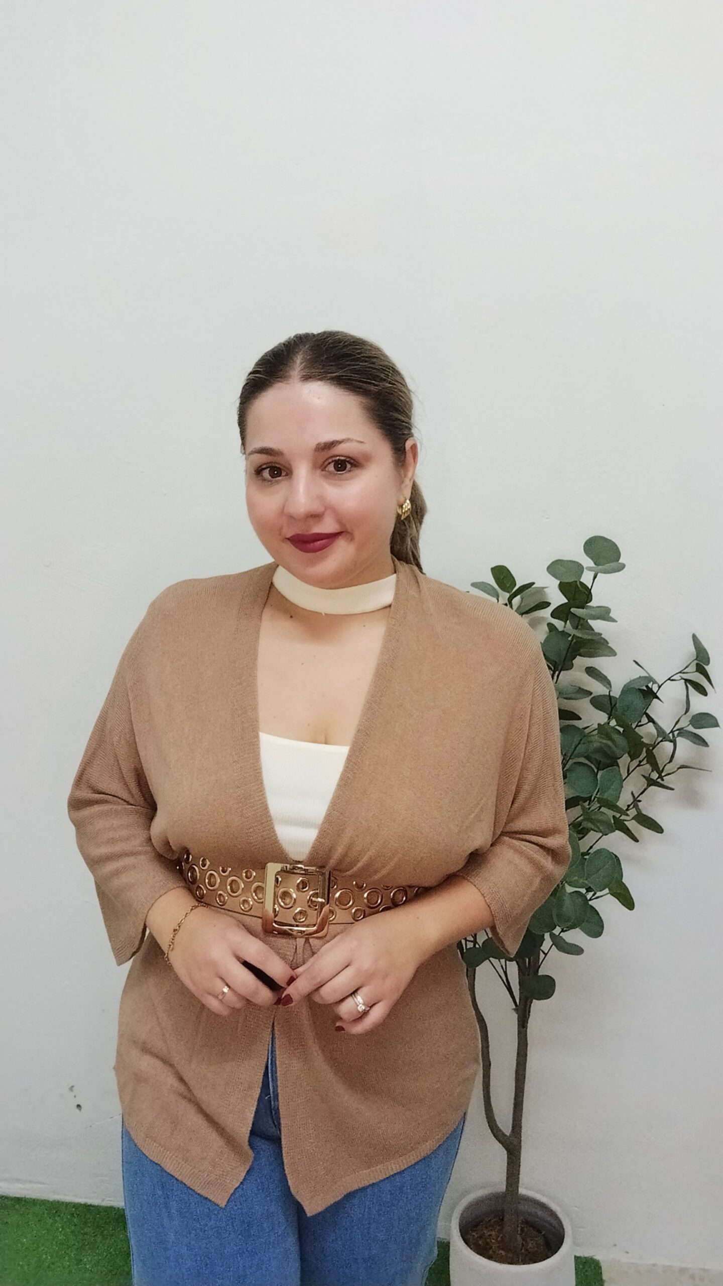 Kimono de punto fino en color camel. Tejido suave, agradable y elástico, ideal para entretiempo. Es bastante amplio y da bastante talla. ¡Puedes llevarlo de muchas maneras y completar tu outfit! Talla única, abarcaría desde la talla S(36) hasta la talla XL(42). Cinturón no incluido. Si necesitas ayuda con las medidas, háblanos al 614265099.