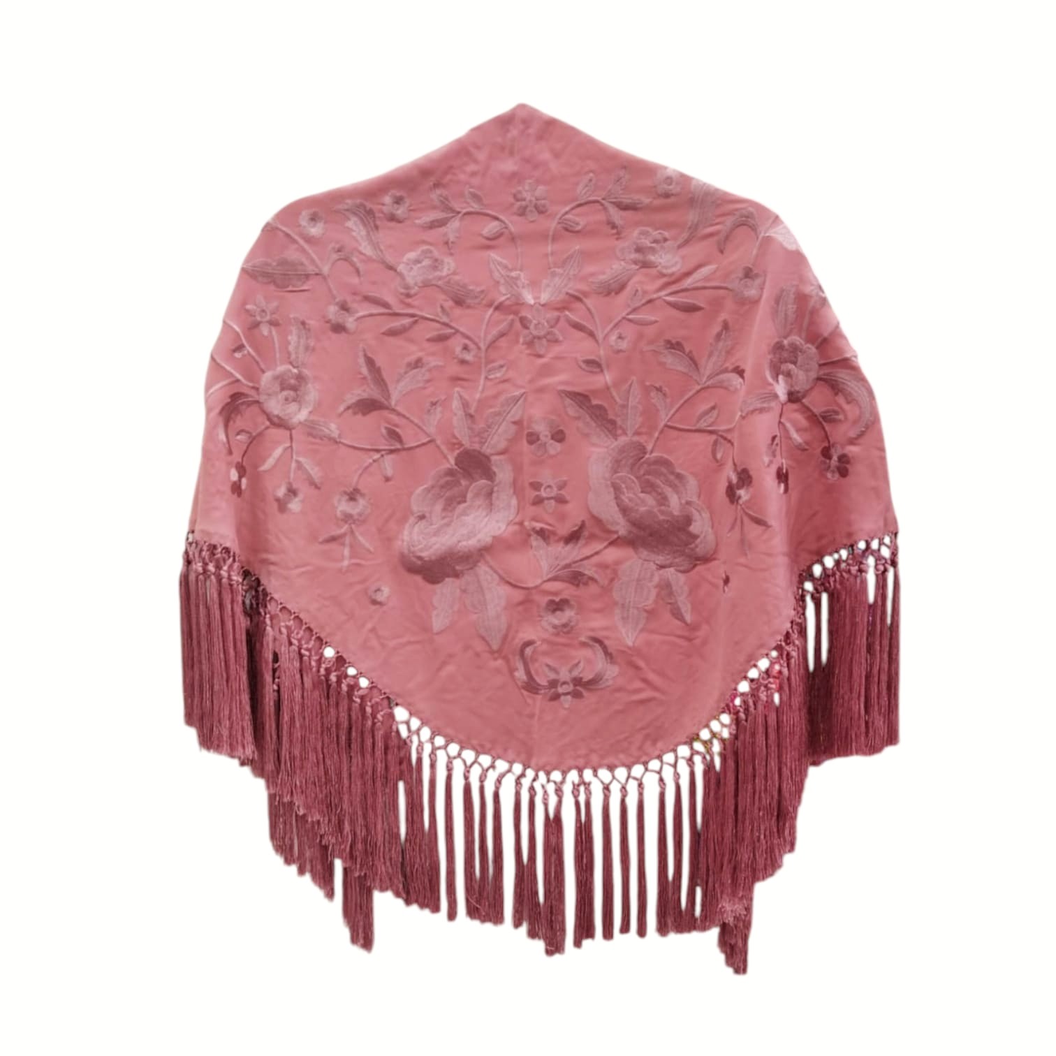 Precioso mantoncillo confeccionado en crespón de seda, un tejido suave y muy cómodo de llevar. Color rosa maquillaje, bordado a tono y flecado a mano. Ideal para cualquier romería o feria. *Según el dispositivo desde el que estés visualizando nuestra web, los colores pueden verse ligeramente alterados*.