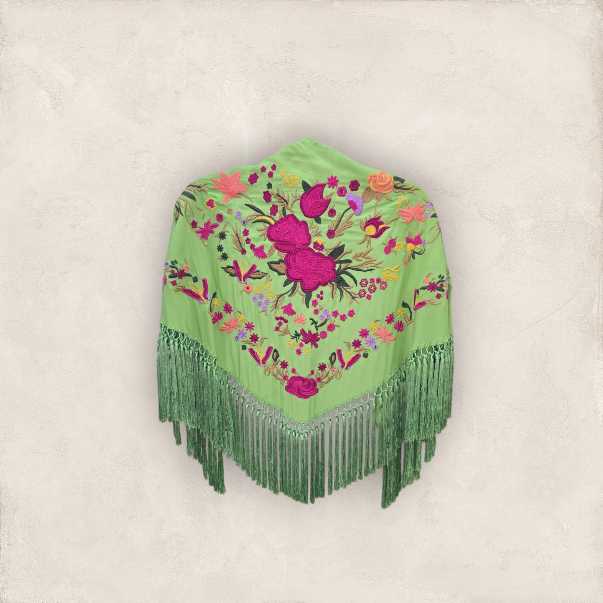 Mantoncillo Cantillana Verde Manzana Bordado Buganvilla