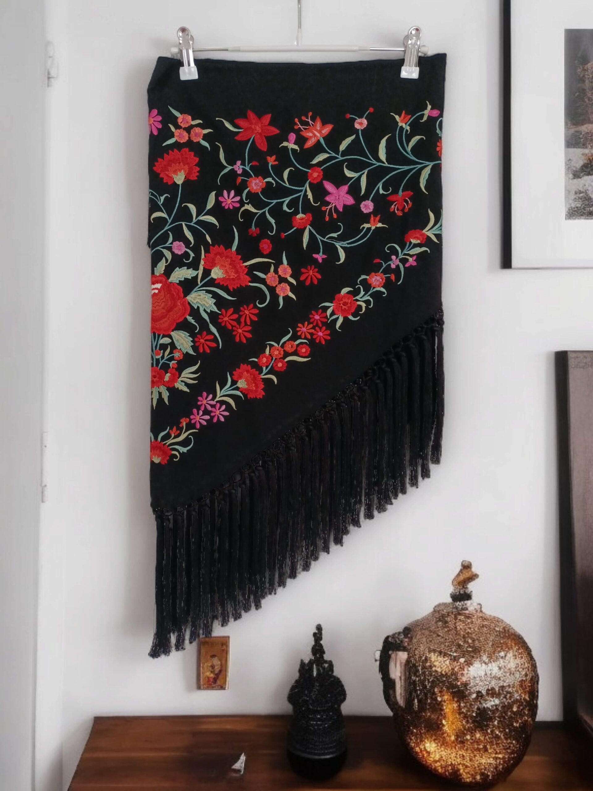 Sé el primero en valorar “Mantoncillo Clavel Negro Bordado Rojo”