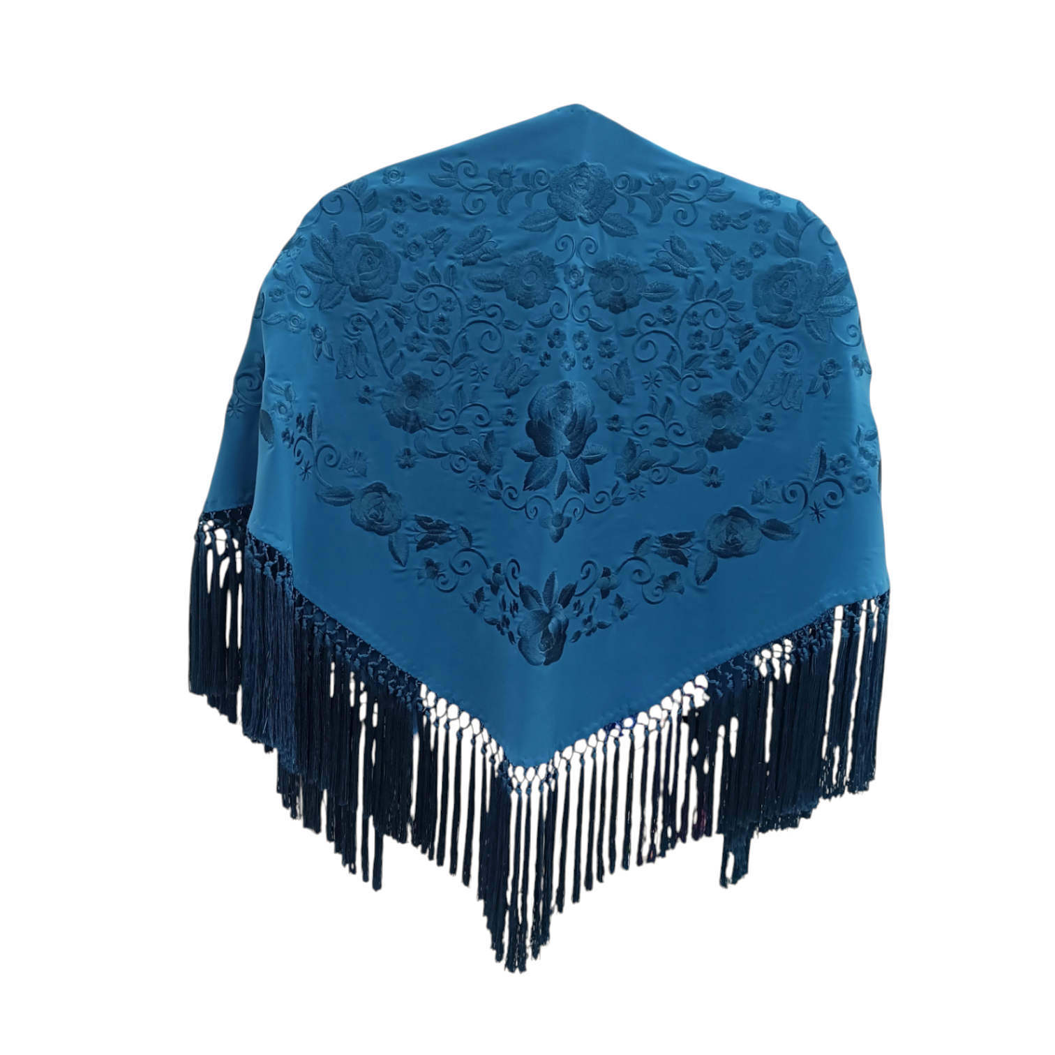 Sé el primero en valorar “Mantoncillo Primavera Azul Petróleo Bordado a Tono”