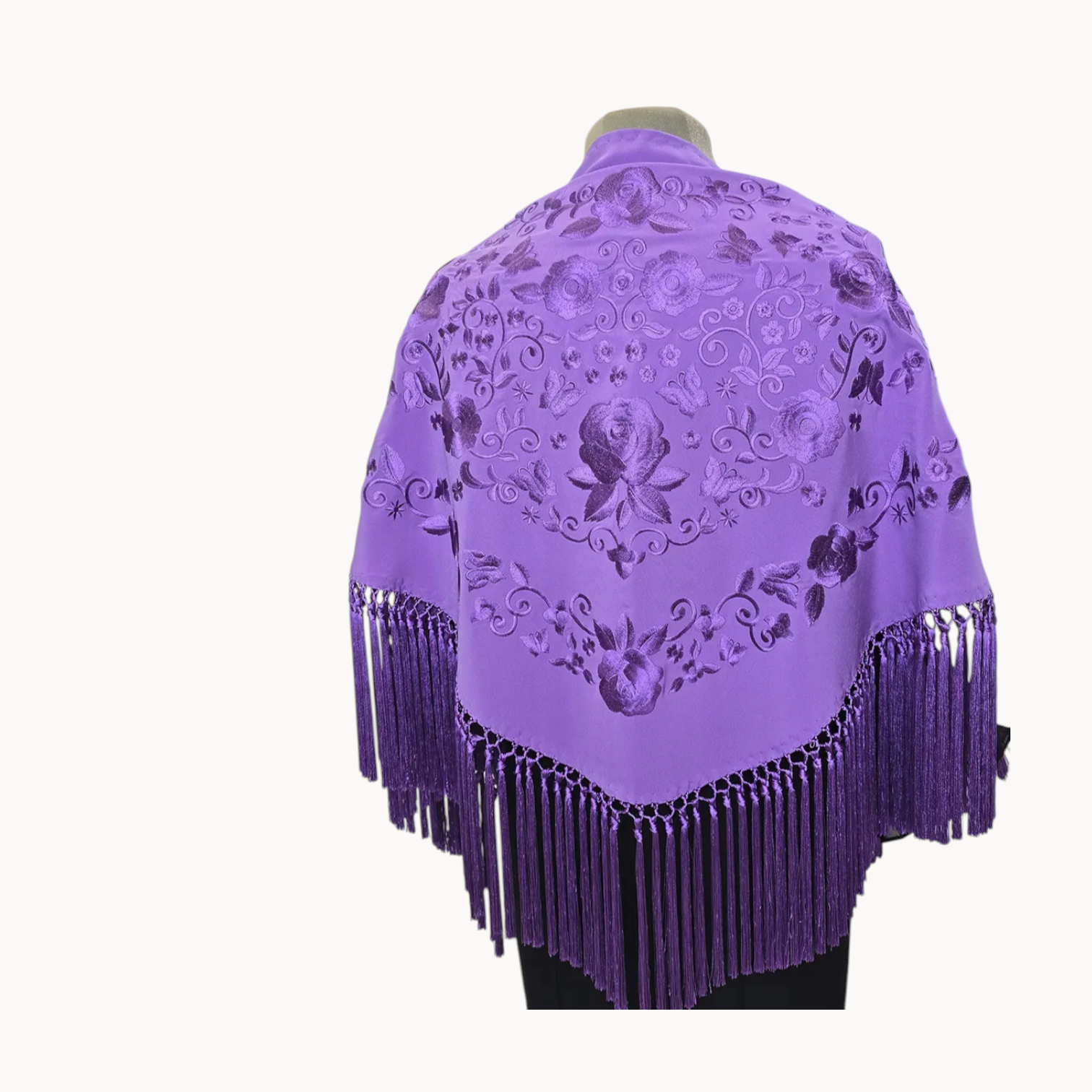 Precioso mantoncillo confeccionado en crespón de seda, un tejido suave y muy cómodo de llevar. Color malva, bordado a tono y flecado a mano. Ideal para cualquier romería o feria. *Según el dispositivo desde el que estés visualizando nuestra web, los colores pueden verse ligeramente alterados*.