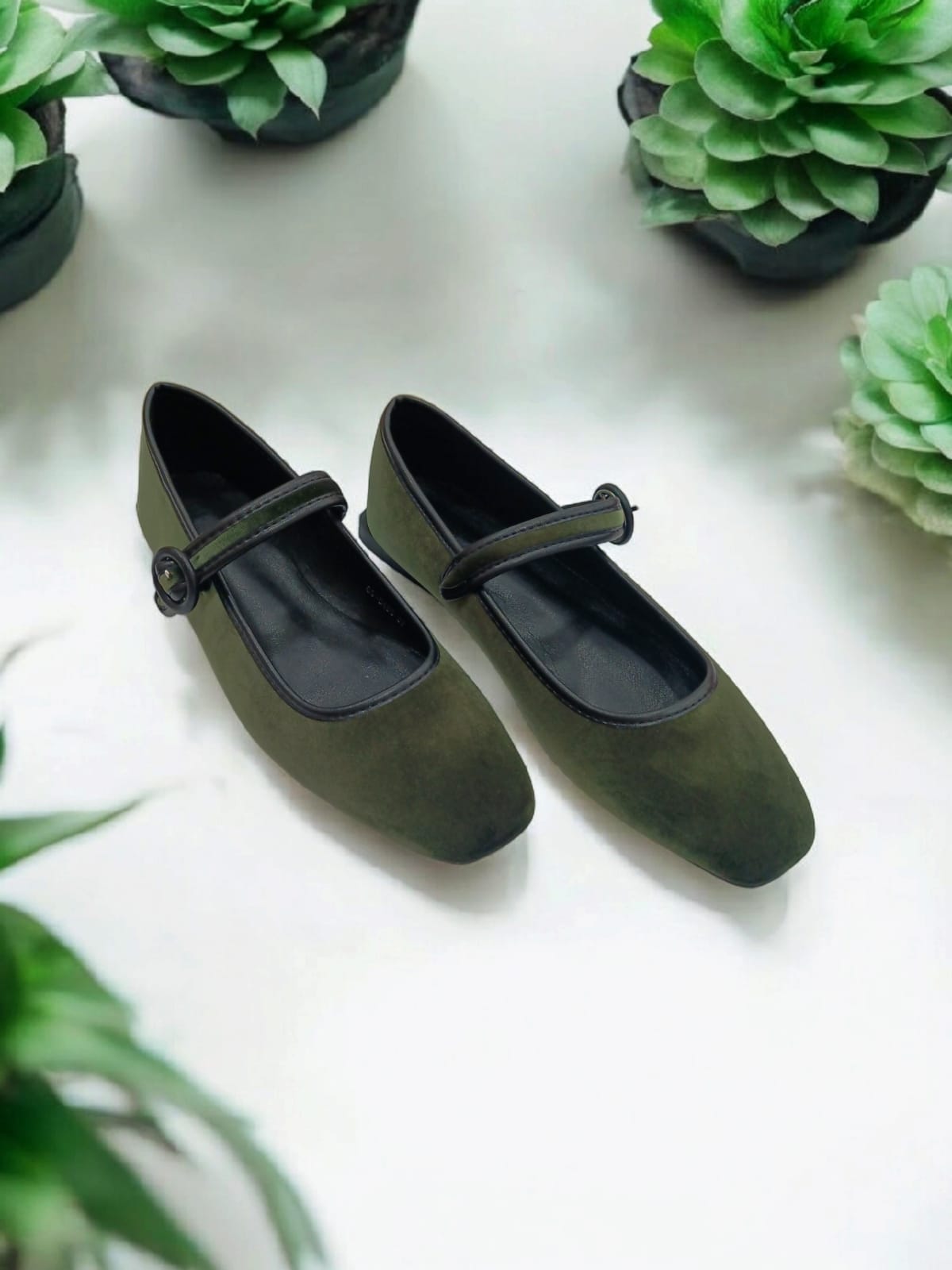 Merceditas de Terciopelo Verde Caqui