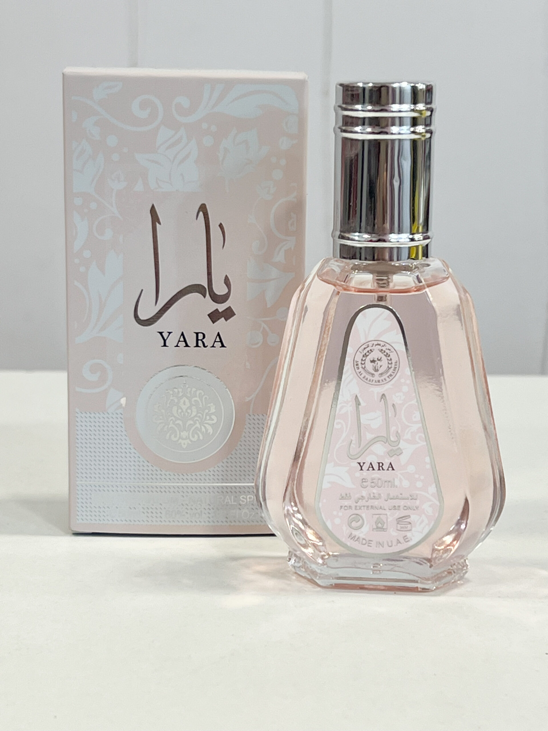 Lattafa, marca de perfumes líder de Dubái. Versión en tamaño mini de 50 ml de la fragancia Yara de Lattafa, lo que lo hace ideal para llevar en tu bolso. El eau de parfum para mujer Lattafa Yara es la materialización del lujo y la exclusividad. Fragancia oriental, floral y gourmand.