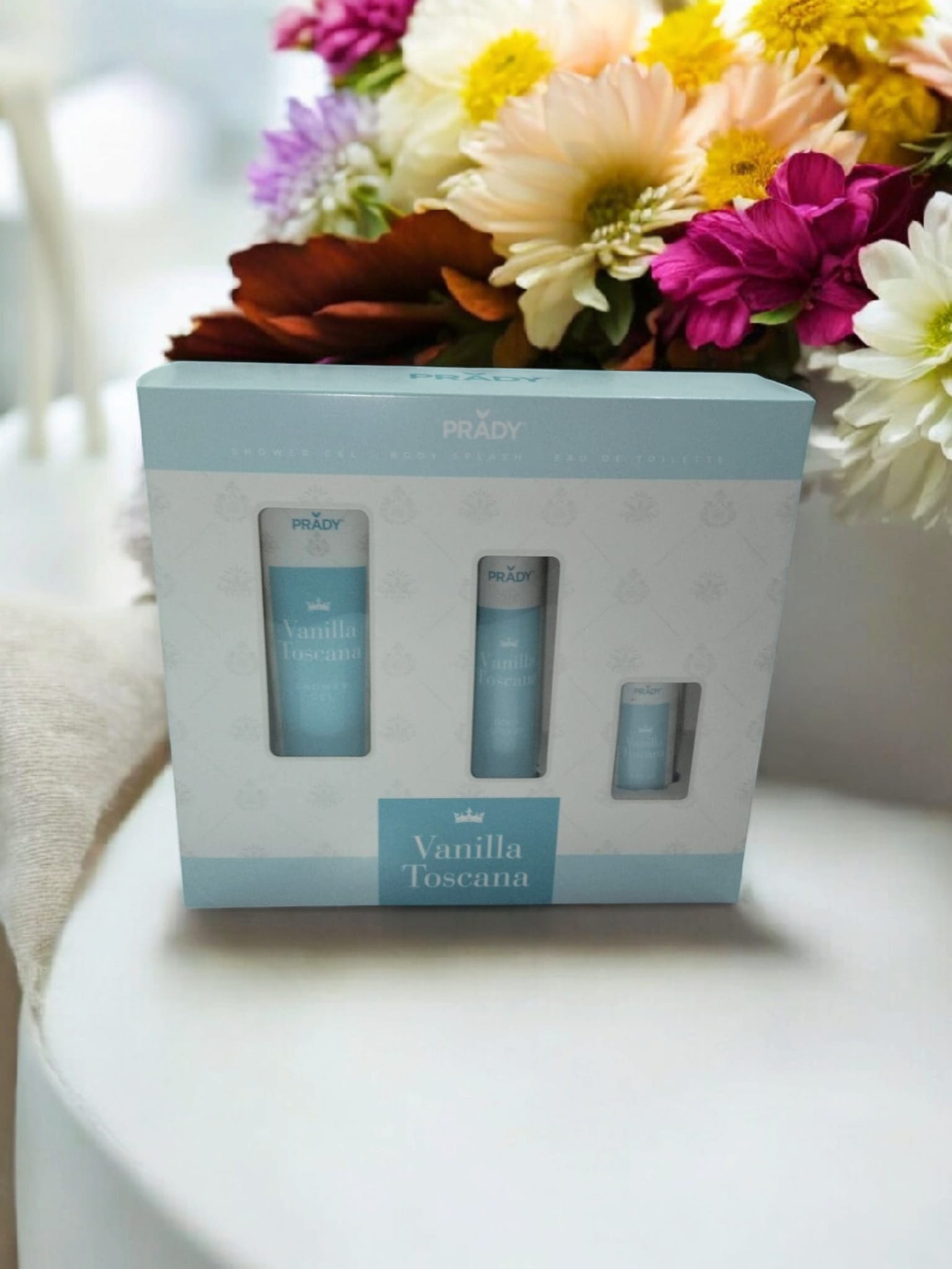 ¡El perfume más buscado del momento en formato pack! Este pack Vanilla Toscana de Prady, es la inspiración del conocido perfume Bianco Latte, que evoca a un lujoso postre de leche con vainilla, con aromas a chocolate blanco. Es una fragancia dulce, cremosa, con aromas de vainilla y caramelo y notas de leche y miel. Sus notas de leche, almendra, vainilla, heliotropo, almizcle y madera de sándalo hacen una fragancia que da sensación de calidez, sofisticación y elegancia. FAMILIA OLFATIVA: Gourmand.