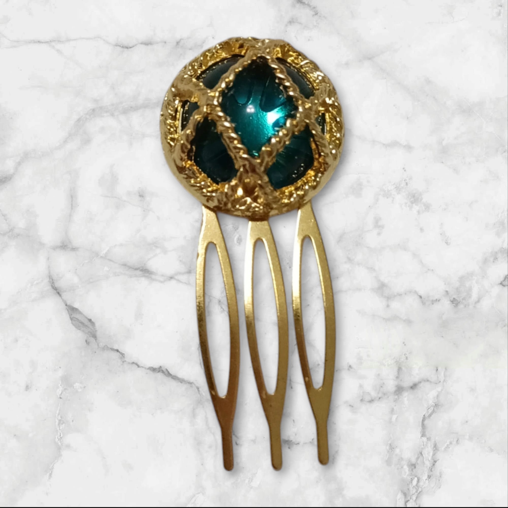 Sé el primero en valorar “Peinecillo Botón Verde y Dorado”