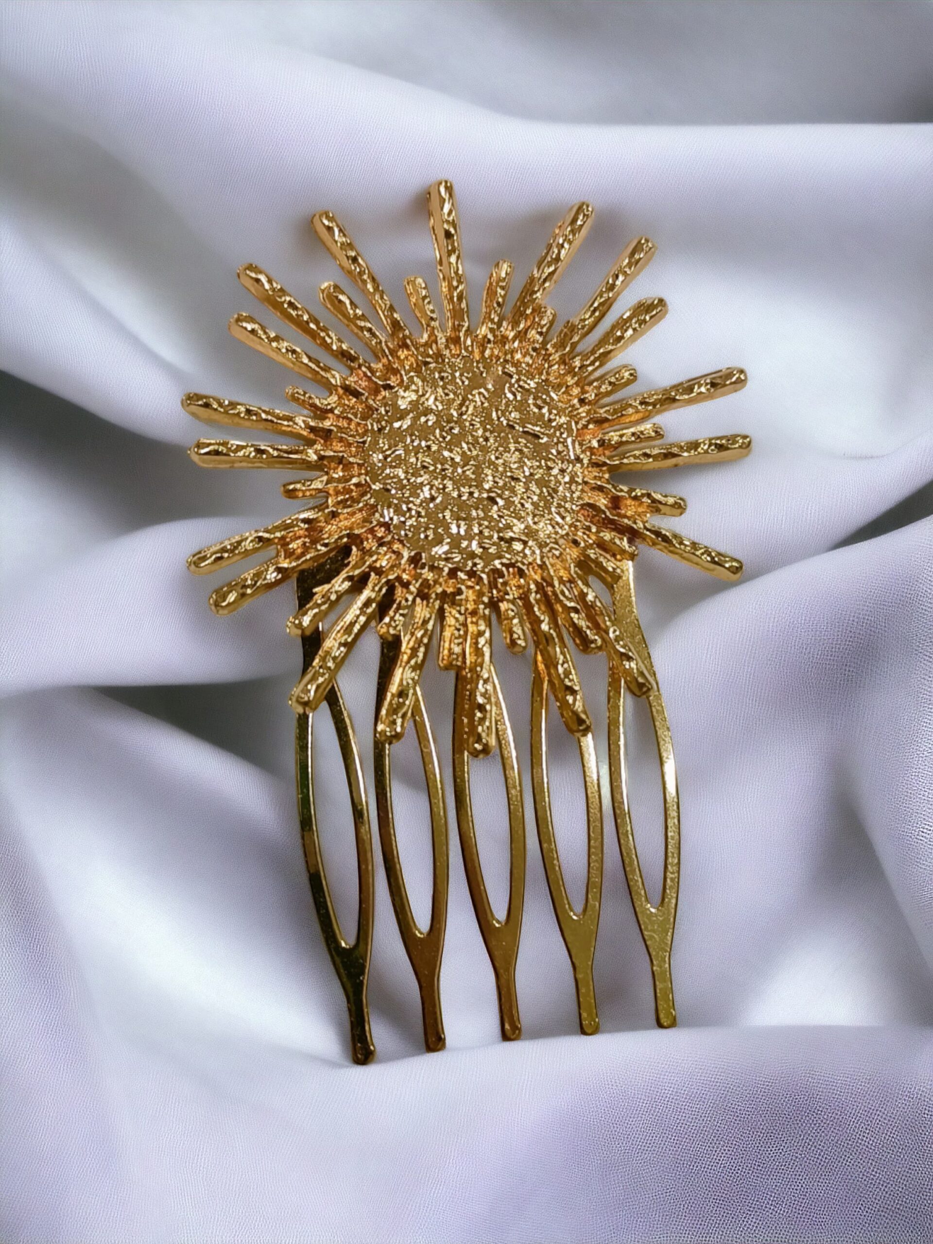 Peinecillos de latón con baño dorado mate, diseño de estrella. Elige nuestro broche estrella a juego.