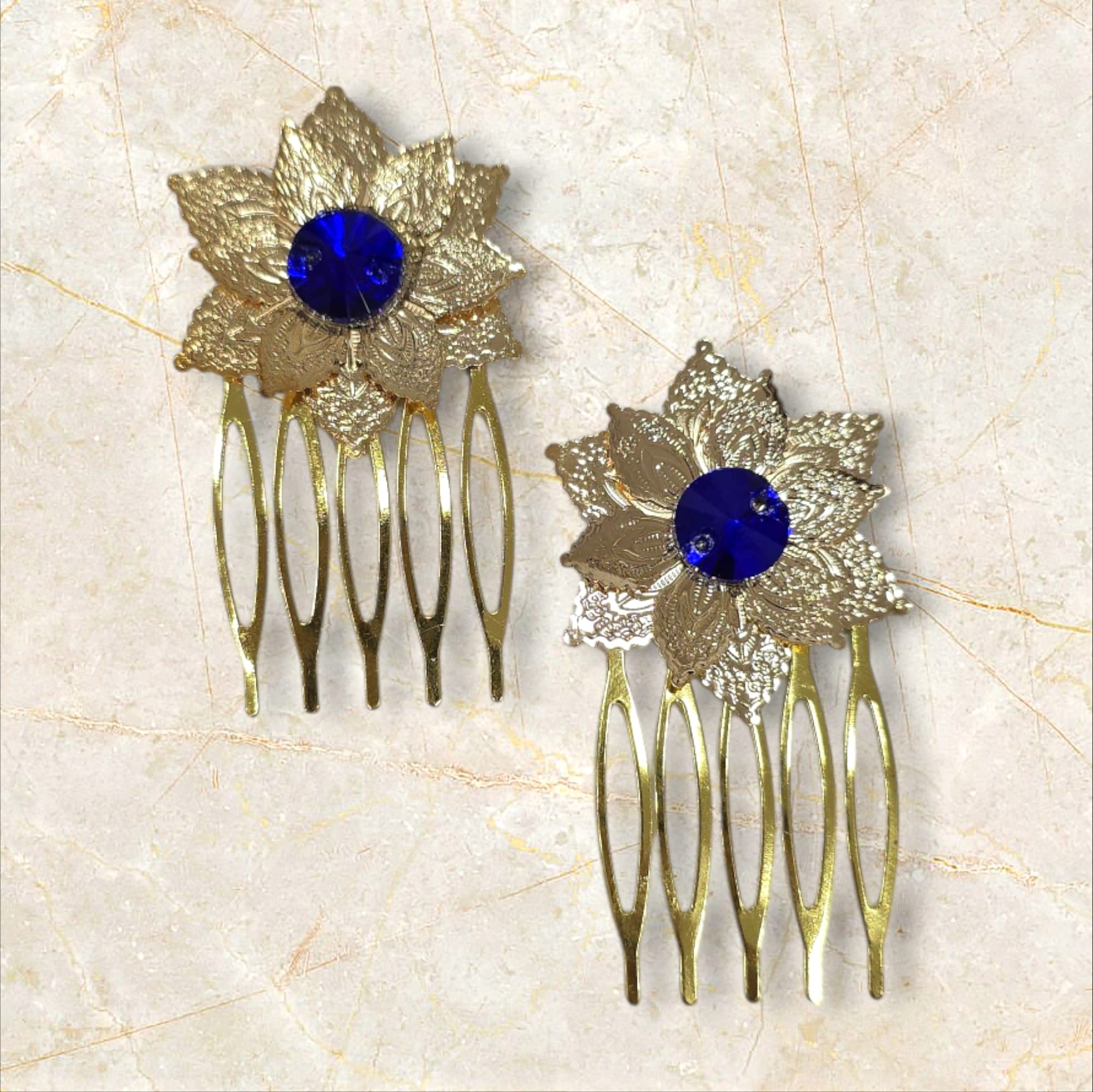 Peinecillo diseño flor con piedra azul. Ideal para ferias, romerías o eventos.