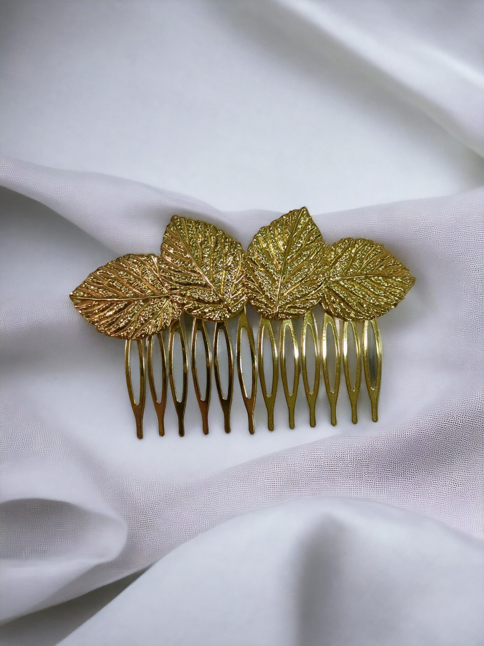 Peinecillo de latón con baño dorado mate, diseño de 4 hojas.