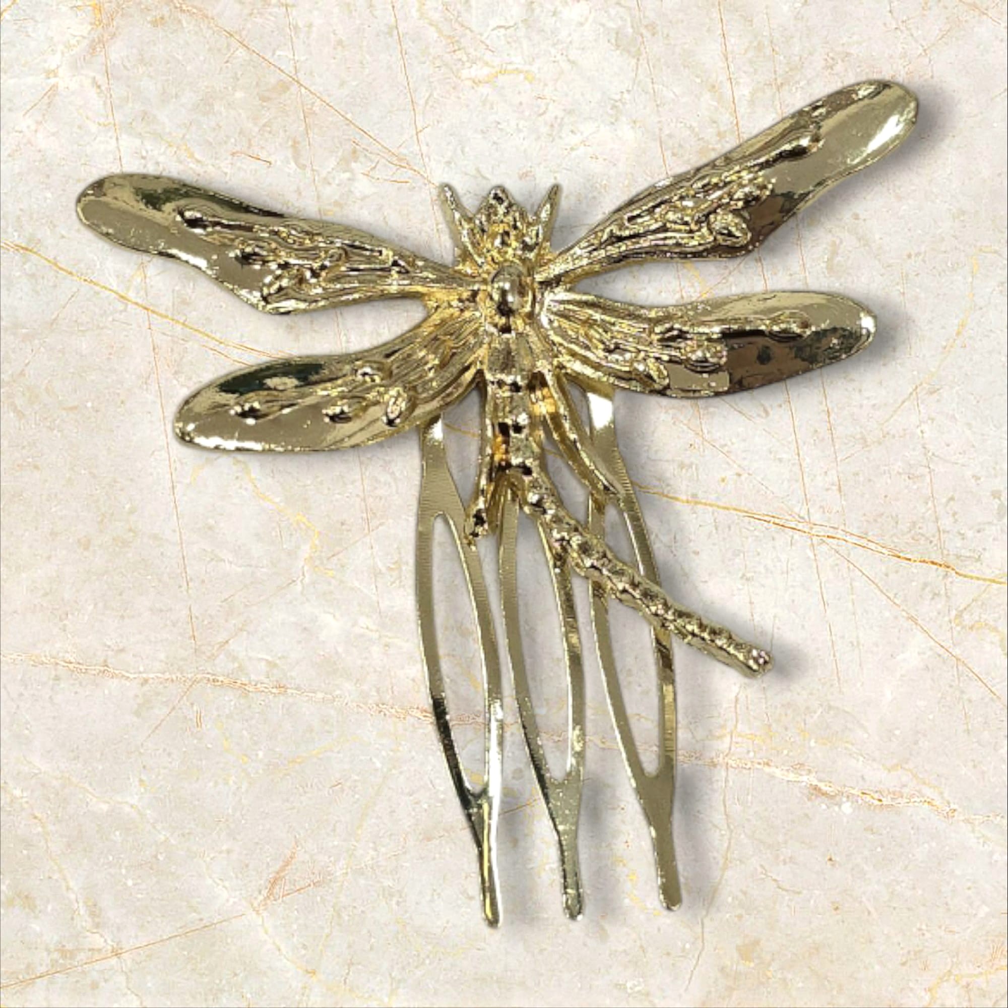 Peinecillo Libélula Diseño Relieve Dorado