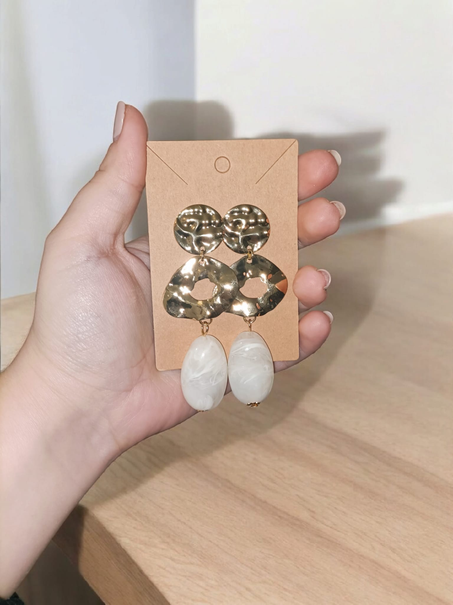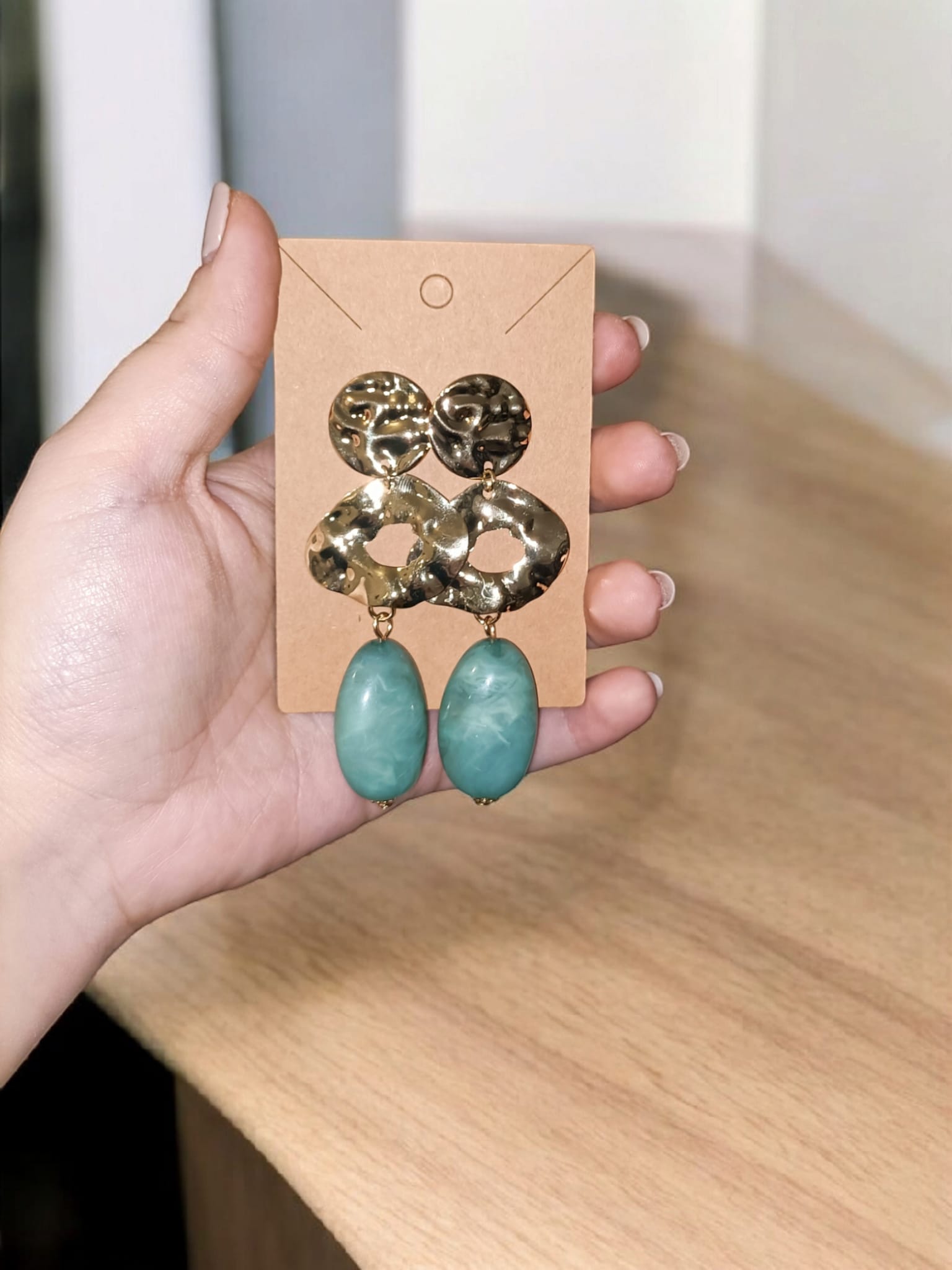 Pendientes de flamenca diseño argolla dorada y piedra. Disponible en varios colores.