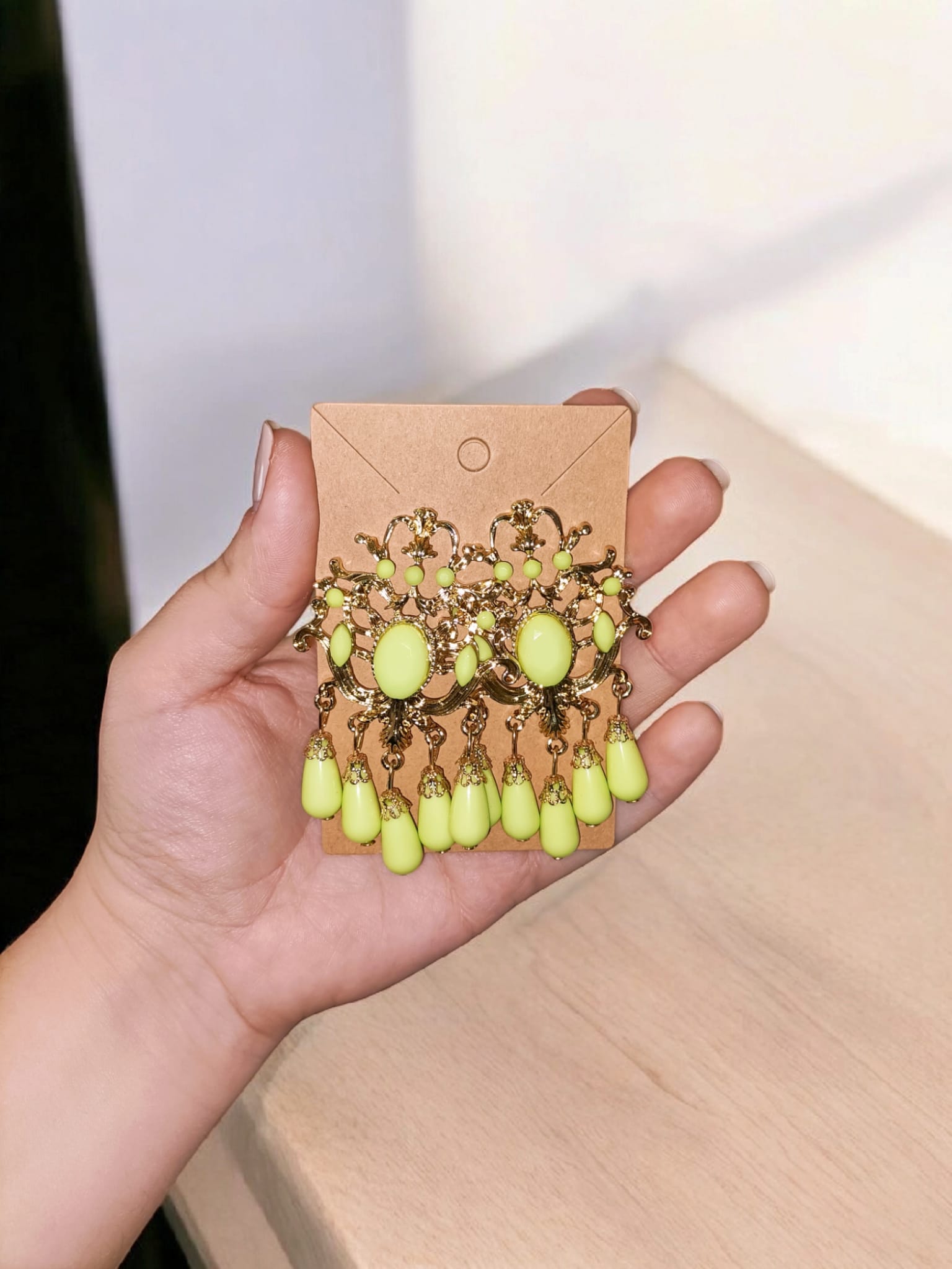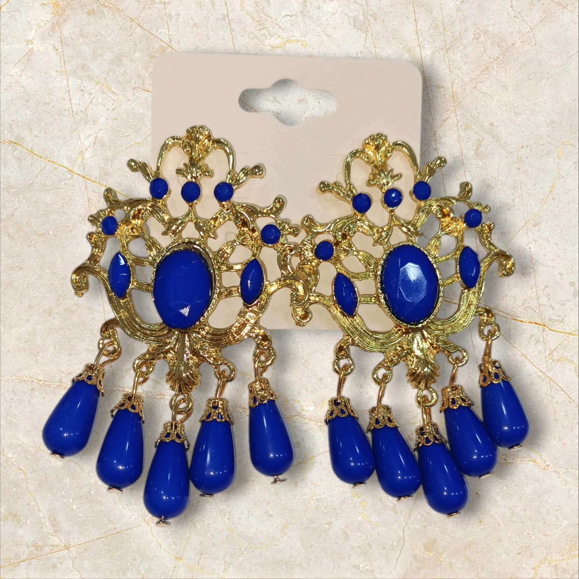 Pendientes de flamenca diseño piedra central y mini lágrimas con detalles dorados.
