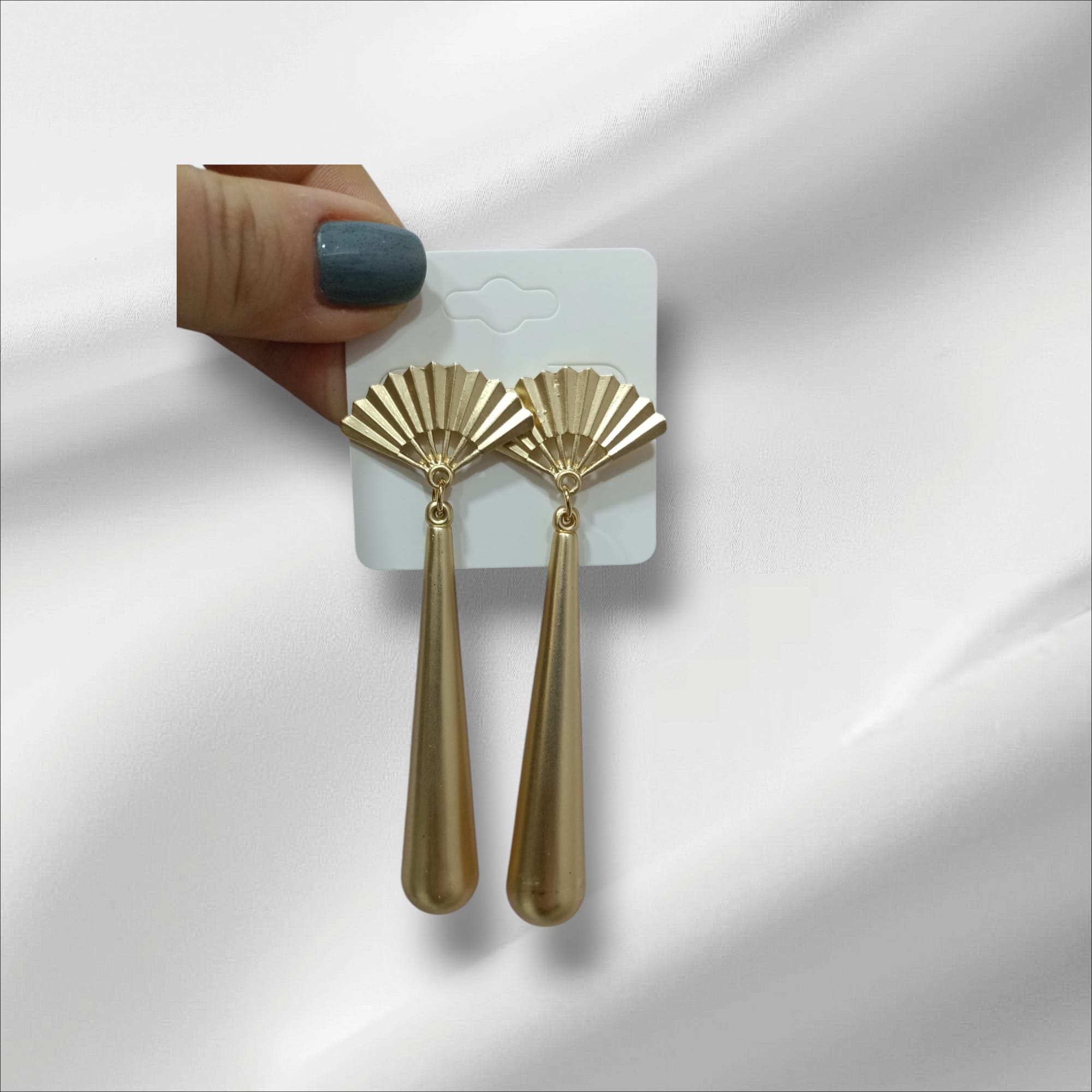 Pendientes de flamenca diseño lágrima y abanico, en color dorado mate. No pesan mucho.