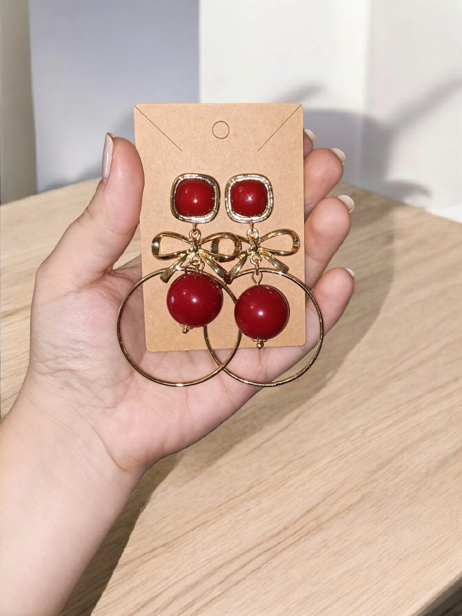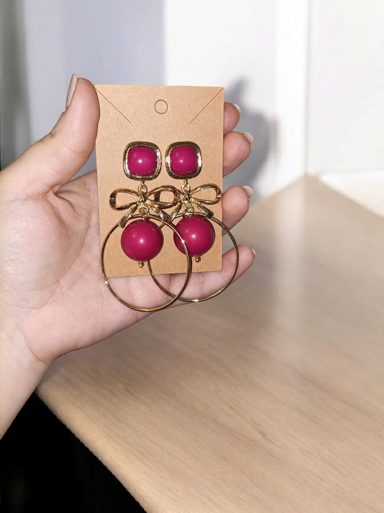 Pendientes de flamenca diseño aro con bolita y lazo. Disponible en varios colores.