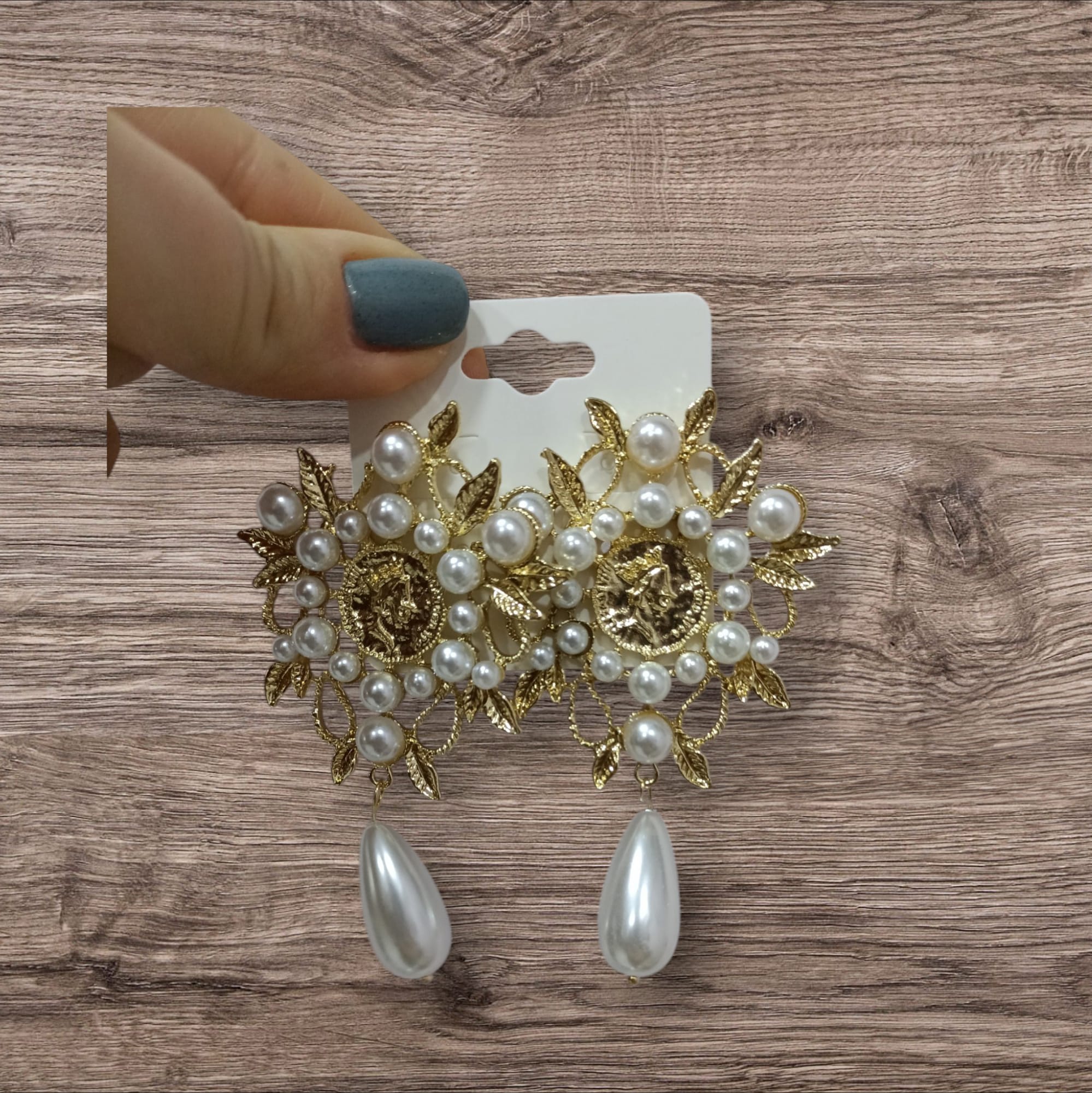 Pendientes de flamenca diseño vintage con perlas, hojas y lágrima perlada. Cierre a presión. Ideal para eventos o flamenca. No pesan nada.