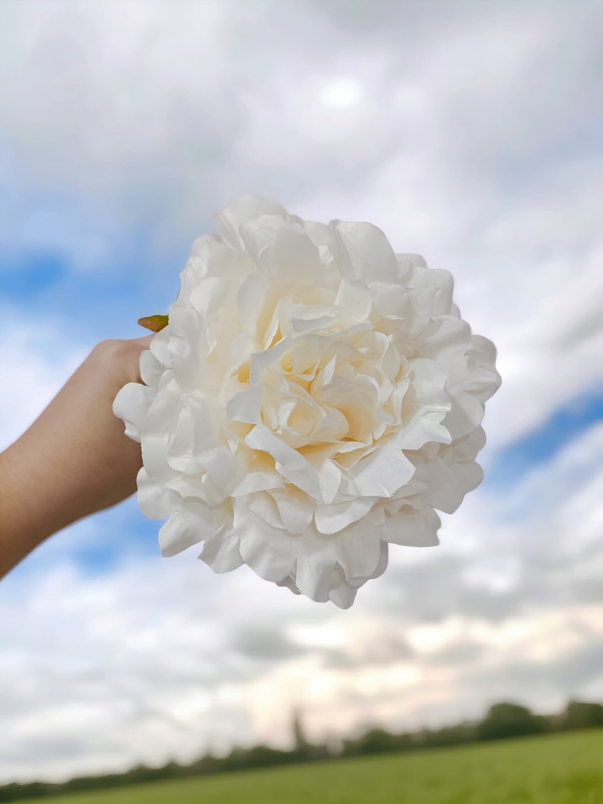 Flor de flamenca diseño peonía, de tamaño mediano, con un diámetro aproximado de 13cm.