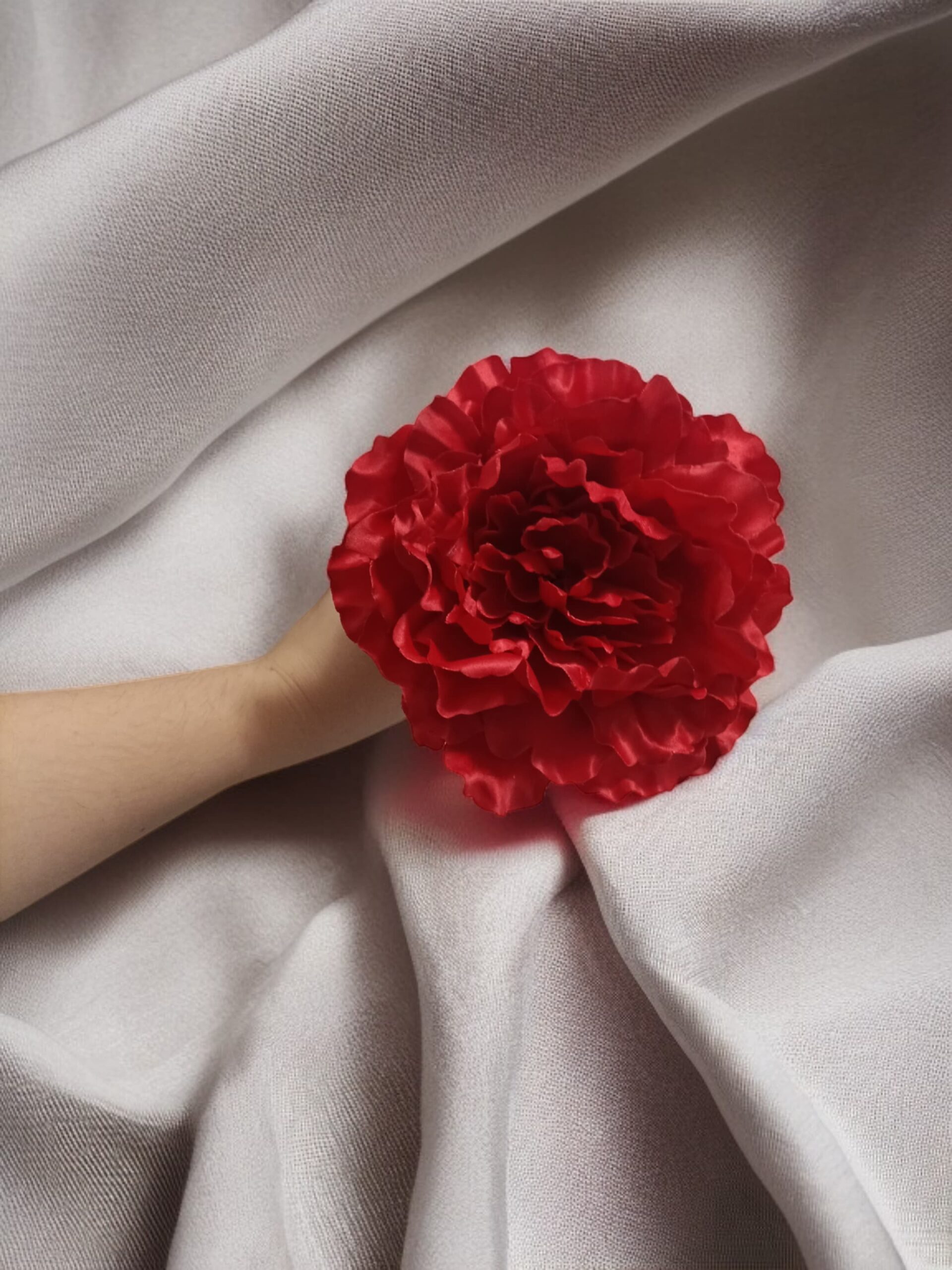 Flor de flamenca diseño peonía, de tamaño grande, con un diámetro aproximado de 16cm.
