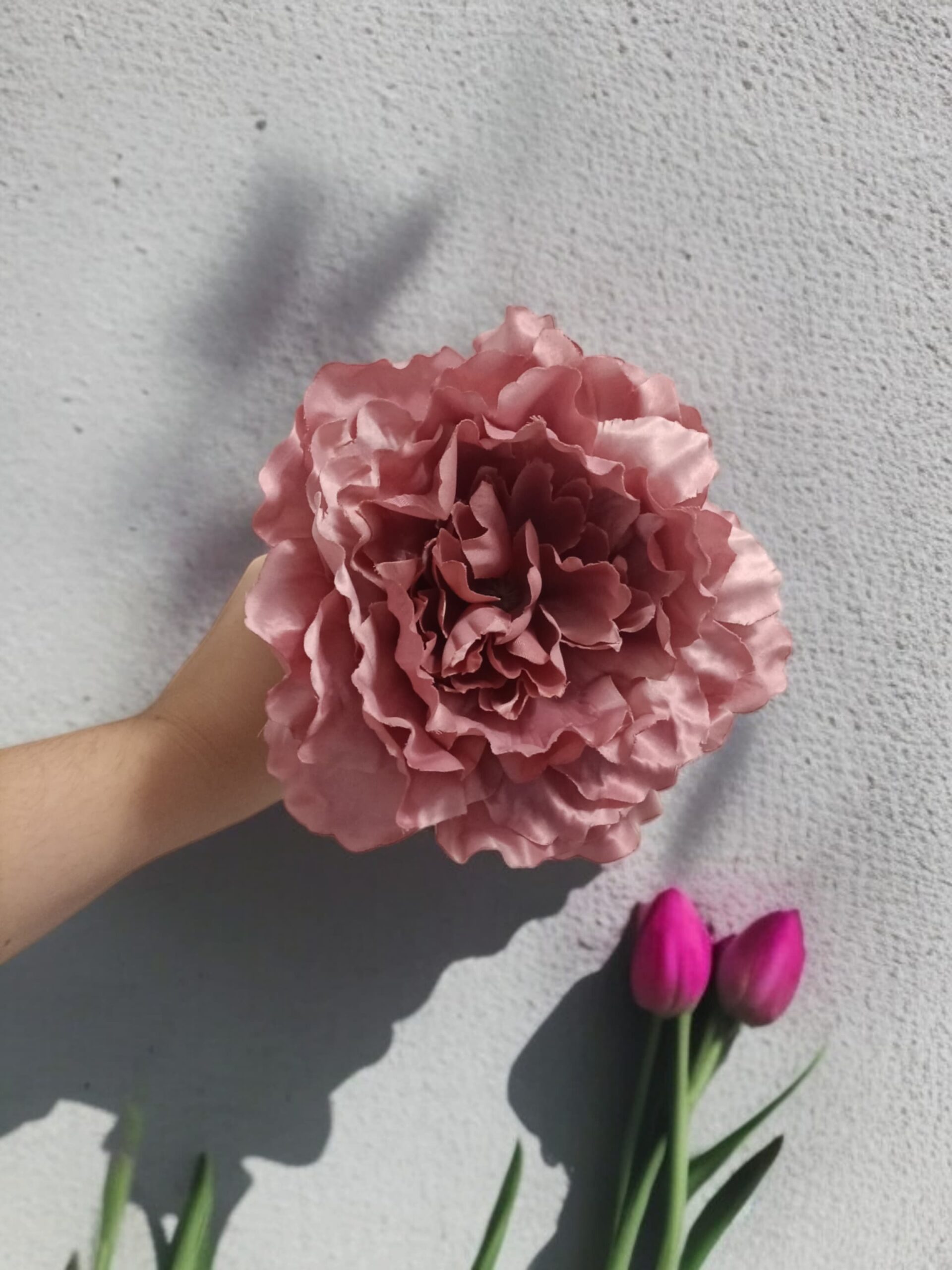 Flor de flamenca diseño peonía, de tamaño grande, con un diámetro aproximado de 16cm.