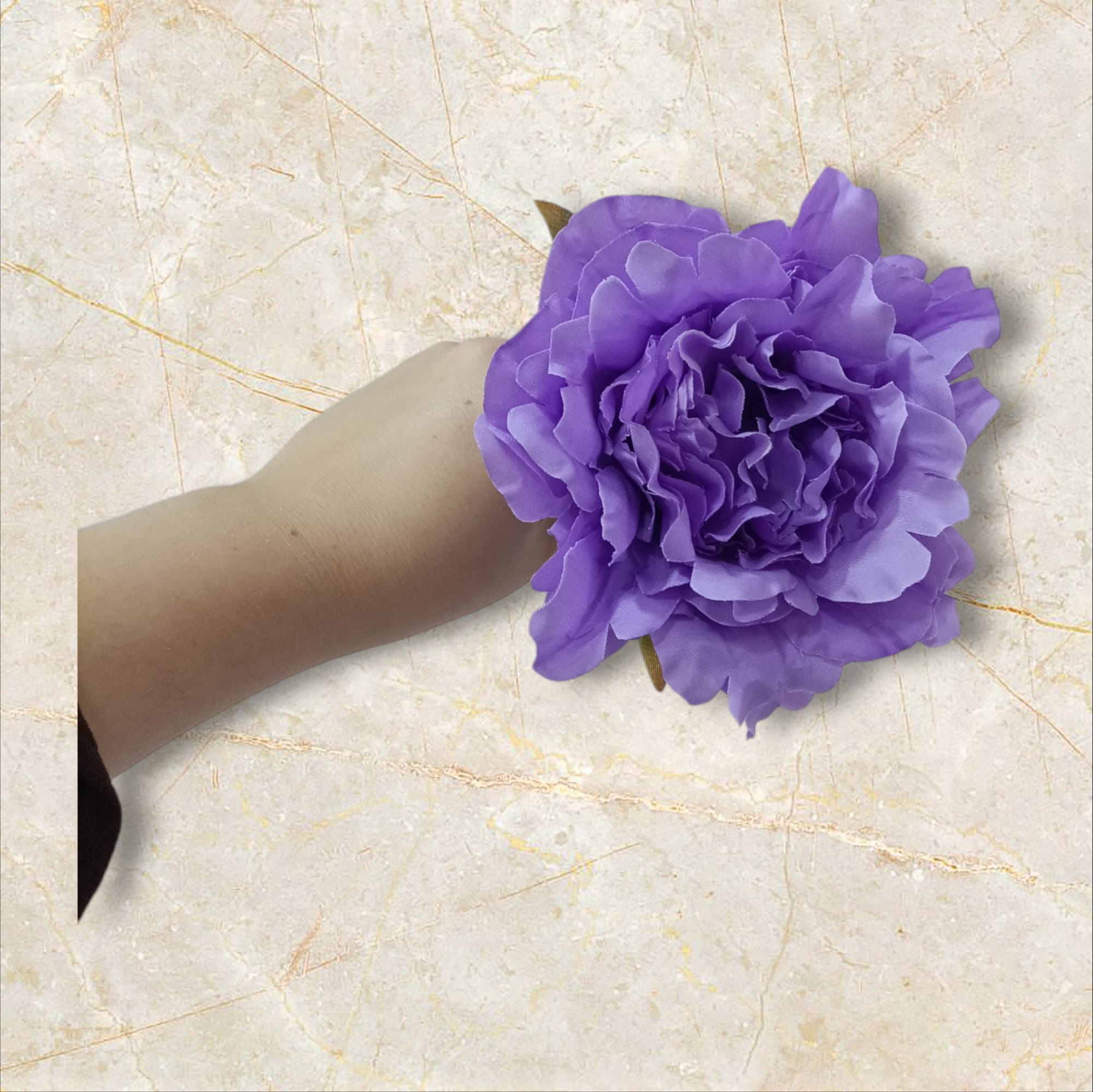 Flor de flamenca diseño peonía, de tamaño mediano, con un diámetro aproximado de 13cm.